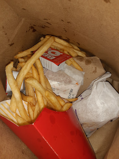 Ok so my sister made an order at 5:39 for 2-2 cheeseburger meals and an extra burger. We live 10 minutes from McDonald's and she gets home only to find out that there are no fries. So she calls and the manager says already with an aditude "well do you want to come get them" and my sister says yes but I go get the fries for her because she doesn't feel good. I get there and the guy says ok just let us know what size the fries were. Ok I get to the window sit there for a few minutes before the manager opens it and says once again with an aditude " no it was no salt right" and starts to point forward as to say you need to pull up but I said no they were regular and also when you order a meal it comes with medium fries. So she hands me the bag but before she could leave I asked to get a new Dr pepper because it was flat and very light brown and she looked pissed about that. She gives me the new Dr pepper and I started to drive off when I looked in the bag and saw a basket of fries so I pull back around and go inside and ask the same woman if a basket is the equivalent to two medium fries and she said " actually yes that's exactly what it is it's exactly the equivalent to two mediums" and I said ok and walked out. I try the fries she gave me and they aren't even completely cooked so I had to throw them in the air fryer. This isn't the only time we've had a problem with this McDonald's and we're pretty damn tired of it. Also the 2 cheeseburgers I got were completely smashed also half of the reviews that I'm seeing look fake as hell because you have more than half with less than 3 Stars yet for some reason there are people who leave 5 stars and they say that the manager was so nice and the food was correct like come on stop paying people to leave...