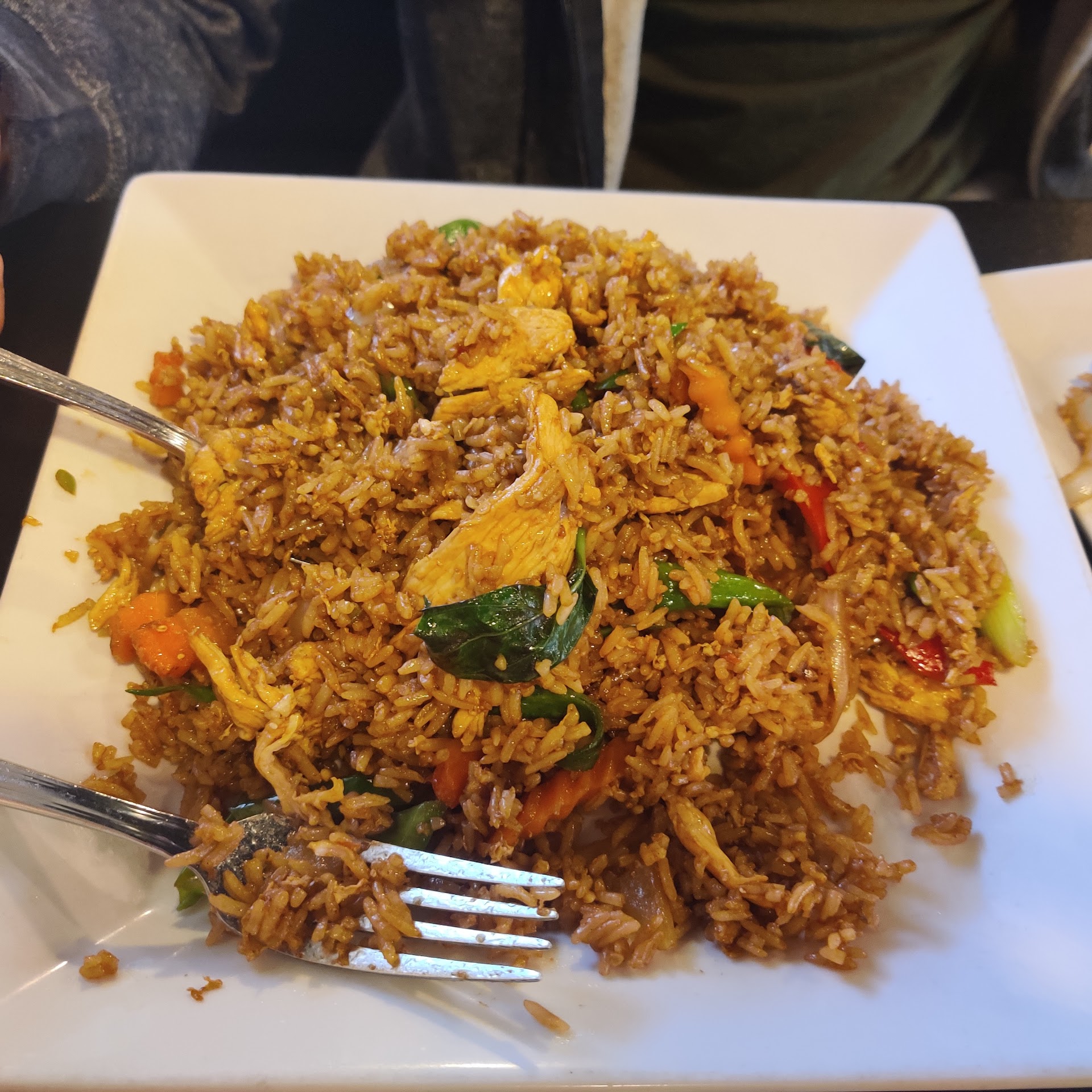 I will start this review by saying that I have eaten here many times in the past and it usually has been a good experience each time for the most part. I Made a to go order and picked it up today and was extremely disappointed with the food. The 2 dishes I ordered where the massaman curry with chicken and the volcano chicken. They asked which spice level I wanted for each dish, I asked for 4 out of 5 stars for the curry and a 3 for the volcano chicken. I will start with the massaman, it had absolutely no level of spice at all. I could see a 4 was written on the container so they did take my order correctly, but the spice level tasted like barely 1 star at most. The rest of the massaman was ok but the portion was very small for the price, so that was also disappointing. Then there was the volcano chicken.. the description on the menu read "hand breaded crispy chicken with minced bell peppers, onions and garlic sauce" nothing about this was accurate. The first thing I noticed was how mushy the chicken was in the sauce with no peppers or onions. The sauce had absolutely no slice to it and was very very sweet and it had an orange/tangerine flavor. Those few things were bad enough but it was excited to at least try the chicken.. disappointed again. Every piece of chicken was so chewy and I wasn't able to eat a single piece entirely without having to spit it out because of how how chewy it was. I could tell it was very over cooked/fried. All around just a really disappointing experience and I will very likely never eat here again. Not worth the $40 I spent...