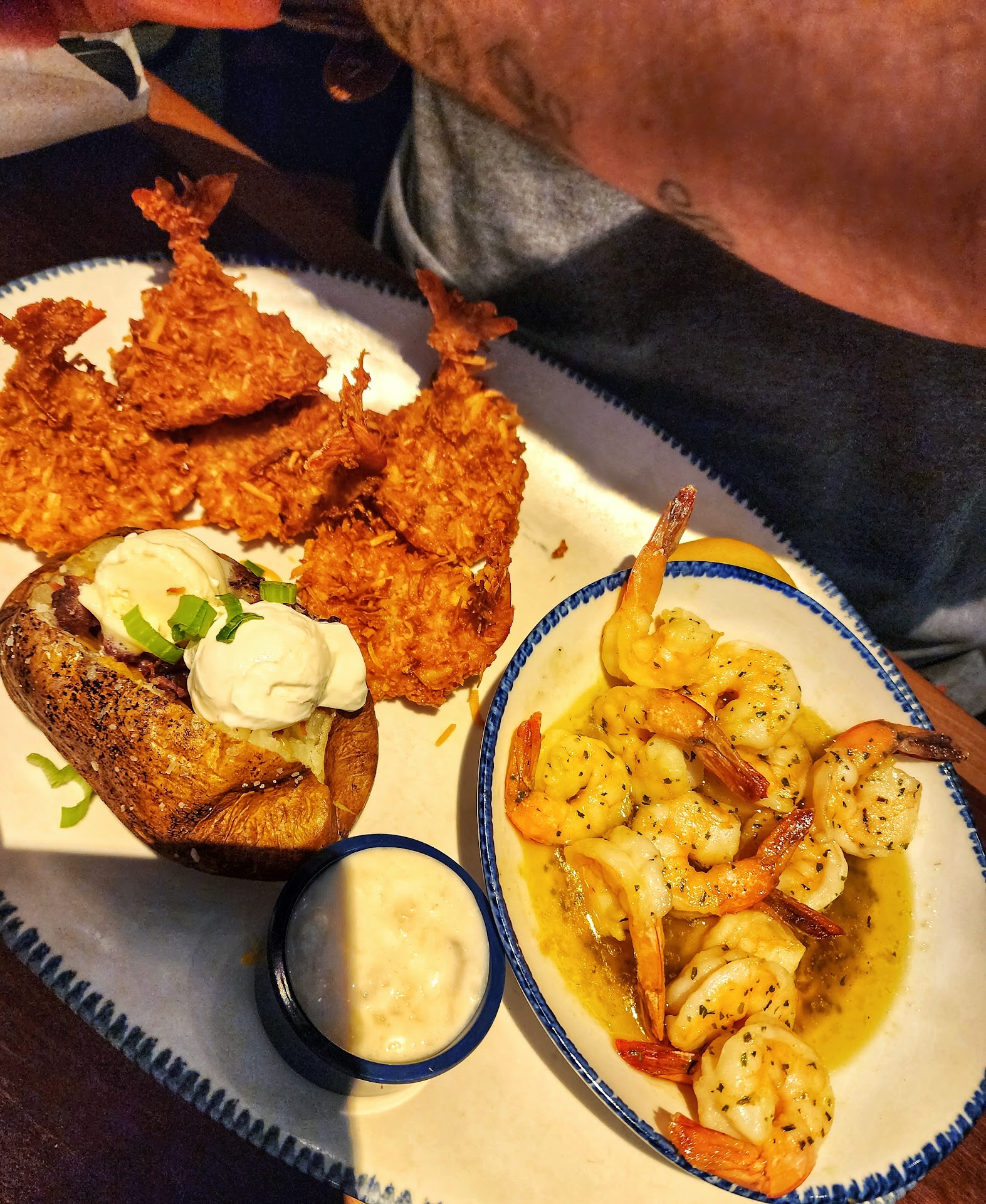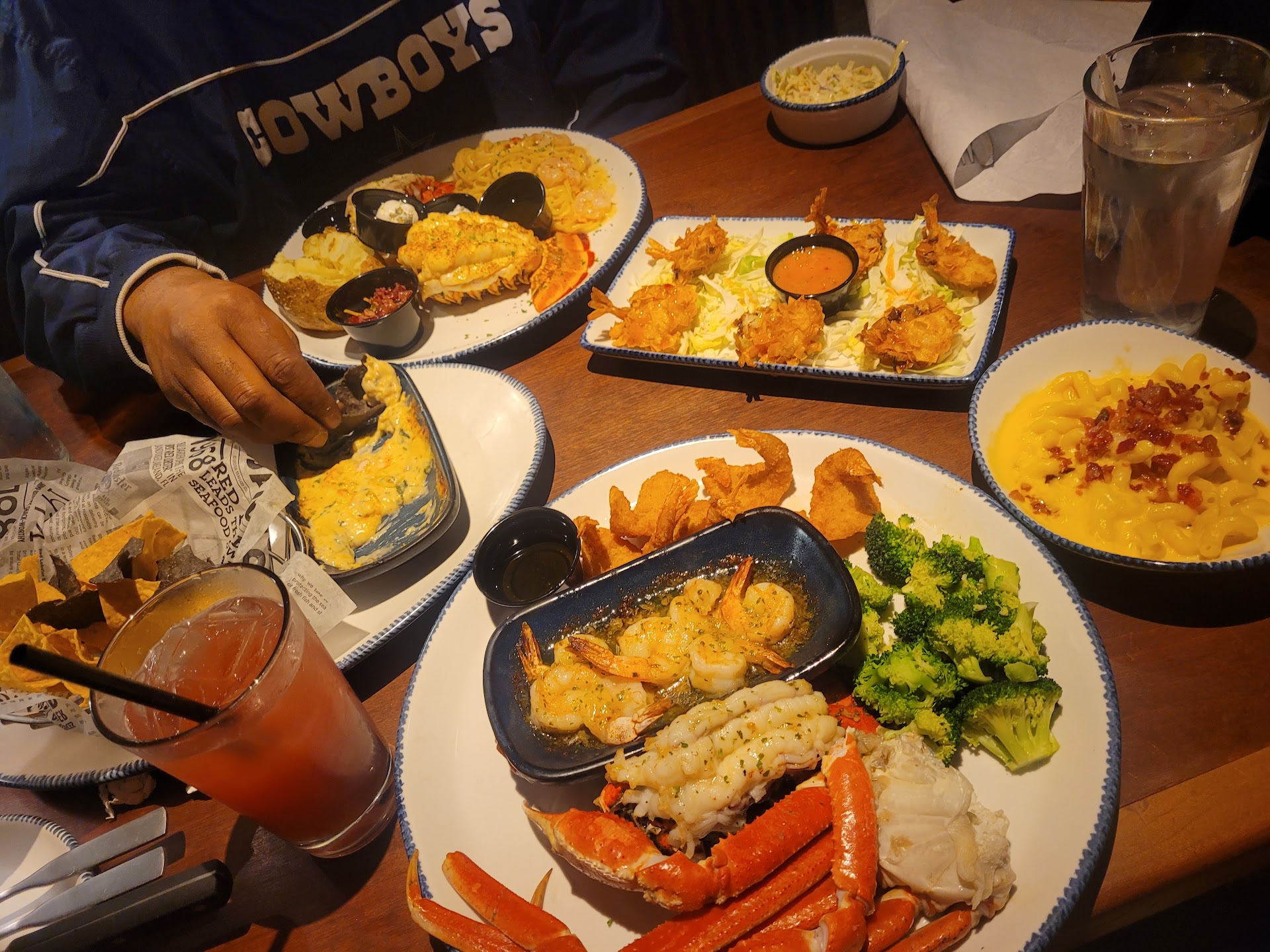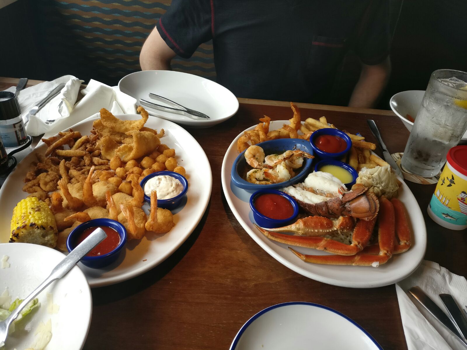 Read moreI hadn't eaten at red lobster since I was a kid, and only ate here today because I had a $50 gift card from the Home for Dinner organization which red lobster sponsors. I am absolutely planning to eat there again however! The food was amazing. I have absolutely nothing to complain about. The bread was hot, buttery, and sent delightful tingles of flavor running down my tongue. I got two assortment dishes to try a little bit of everything and it was all perfect. The crab had great texture and flavor, the lobster made my wife completely change her opinion of lobster (she'd had cheap lobster once before and thought she didn't like lobster at all because of that) the shrimp were perfect, even the fries were hot and fresh. Every point of the food was completely above reproach. The same level of quality was displayed in the service. Our order was taken promptly, the food was delivered just after we finished our salads, and our waiter (his name was John and he deserves kudos for his service) perfectly balanced attentiveness with discretion so that we never needed to look for him and lacked nothing but at the same time did not feel his presence to be overly intrusive. The atmosphere of the place was very nice and it was clean with music loud enough to provide some conversational privacy without inhibiting that conversation. As for the price, the food was a bit pricier than some restaurants but not significantly so. Considering the quality of the food, I would say the price was very well worth it, and my wife and I could have gotten full from just a shared platter which would have cost us $15 per person. All in all, I had an absolutely delightful experience and completely intend to go there again with my wife...
