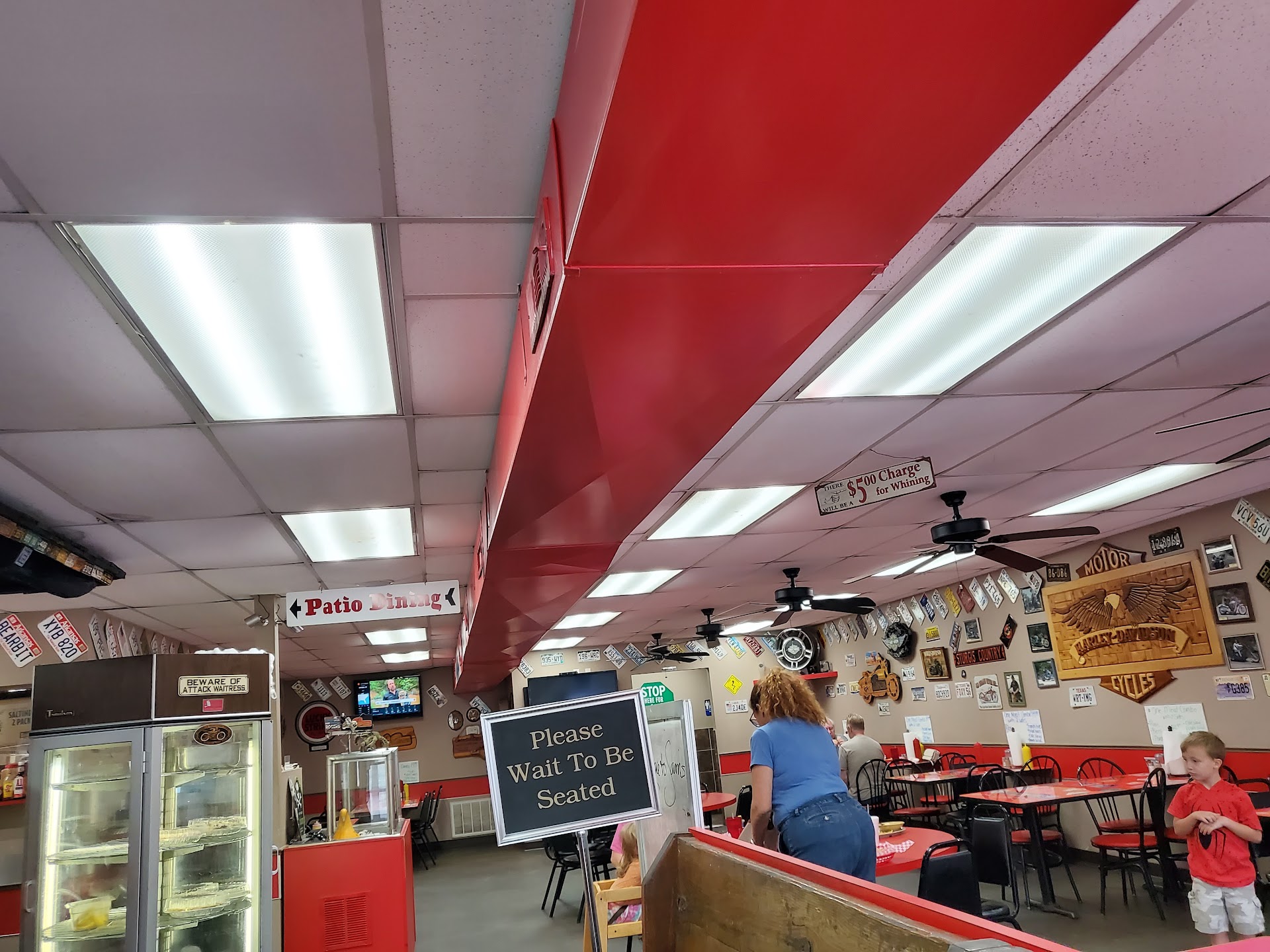 After I ordered (about 5 minutes) I went back outside to check on the dogs and to check the temp in the truck. Everything was fine so I went back inside, ate, and paid.