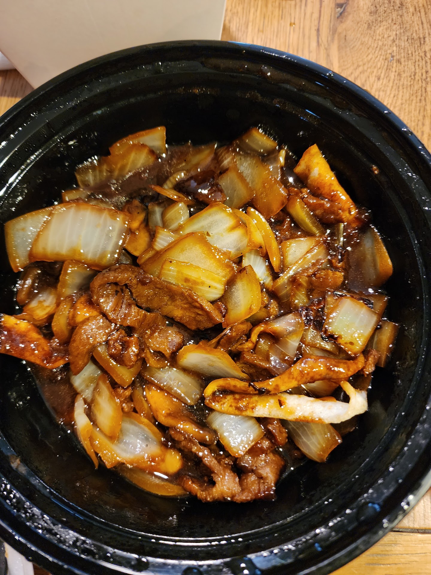The Mongolian beef dish portion size was the worst. It was also $13.00 and had approximately 1 ounce of shaved beef in the container. We paid $13 for a dish of gravy soaked onions with mushrooms and a spattering of meat. I've attached a picture to show the contents.