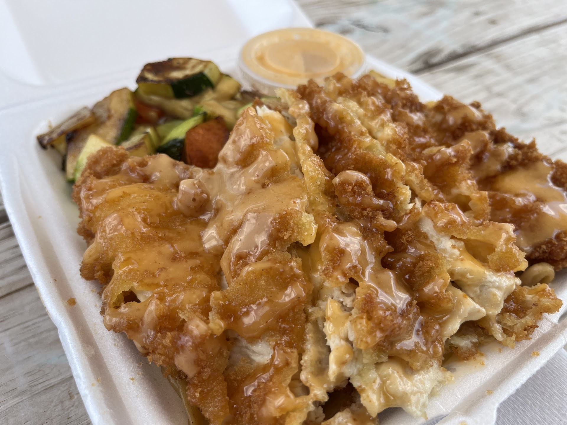 The chicken I ordered had no sauce on it. Idk if they just forgot to put any on it or if that's just how they serve it now but when I order hibachi the chicken is always sauced.