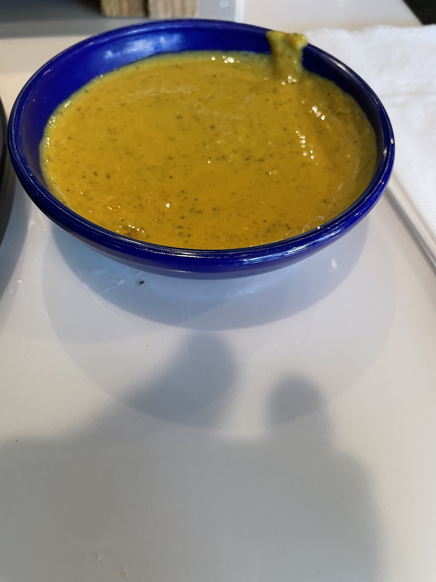 My meal was something I never had before, and it was one of the most delicious meals I have ever had! We also had "Caramba Sauce" which was a bit spicy but complemented both our meals. We ordered a white queso and as the photo shows it disappeared rather quickly! The salsa that came with the chips was so flavorful that I wished I could have the recipe. Fresh ingredients were used, and our chips were refilled without our asking. That impressed me.