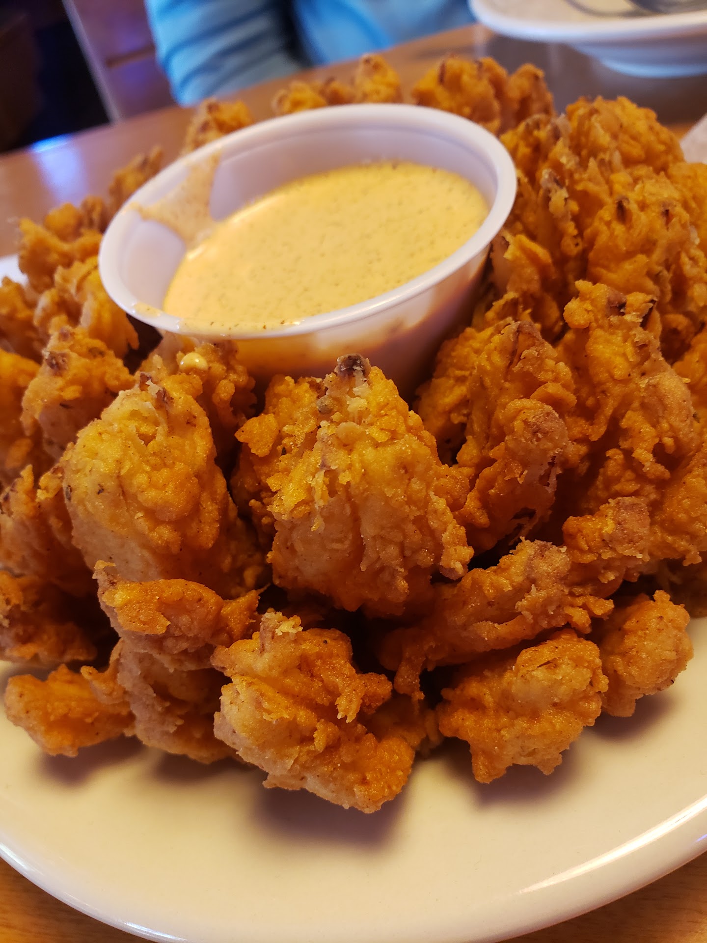 Feeling a bit sketchy about going there to eat since I hadn't been feeling the best so we decided to order it to go ahead of time. I got online and pulled up the menu. Everything looked so good. She and I both decided on the 12 oz ribeye, the ribs with mine, the grilled shrimp with hers. She got a house salad and I opted for the Caesar's salad instead. I had steak fries and she had the steamed broccoli. We got the Blossoming Cactus to share between the two of us. We picked up our order at the designated time in the drive thru and all the way home the smell was enough to make us crazy hungry. Got home and sat down to eat. Her house salad consisted mainly of the white bitter lettuce that should have been tossed in the trash when they first rinsed it. Inedible is how my wife described it. My Caesar's salad was ok but I'll know to avoid it next time. The onion was good but they forgot to include the dipping sauce we specified. I got the bleu cheese chunks on my steak and it tasted really good, there just wasn't enough of that 12 oz ribeye that was even edible once I got past all the gristle and fairly uncooked fat that tasted gross. It was more like a 7 or 8 oz steak after all the undesirable parts were trimmed off or spit out and fed to the dog. She had no problem with it. I, on the other hand, have eaten my fair share of excellent grain fed beef in my lifetime, some even cost over $100 for the steak alone, so I'm well familiar with what a good quality ribeye is supposed to look like, taste like and with little to absolutely zero scraps for the dog. Benecia, our Rat Terrier, had nothing bad to say about it though. The ribs were dry and had to be pried off the bones. Evidently whoever does their smoking has forgotten the one simple rule. The absolute best bbq ribs are done low and slow, meaning low heat and left alone to smoke extra time even. I'm very disappointed, considering this was a gift card the kids had given us for Christmas. The meal was average at best, not what I've come to expect from the Roadhouse, considering their reputation for being a top notch place to eat. It certainly wasn't the $80+ dinner we had anticipated. I really don't see myself going back anytime soon unless it's a...