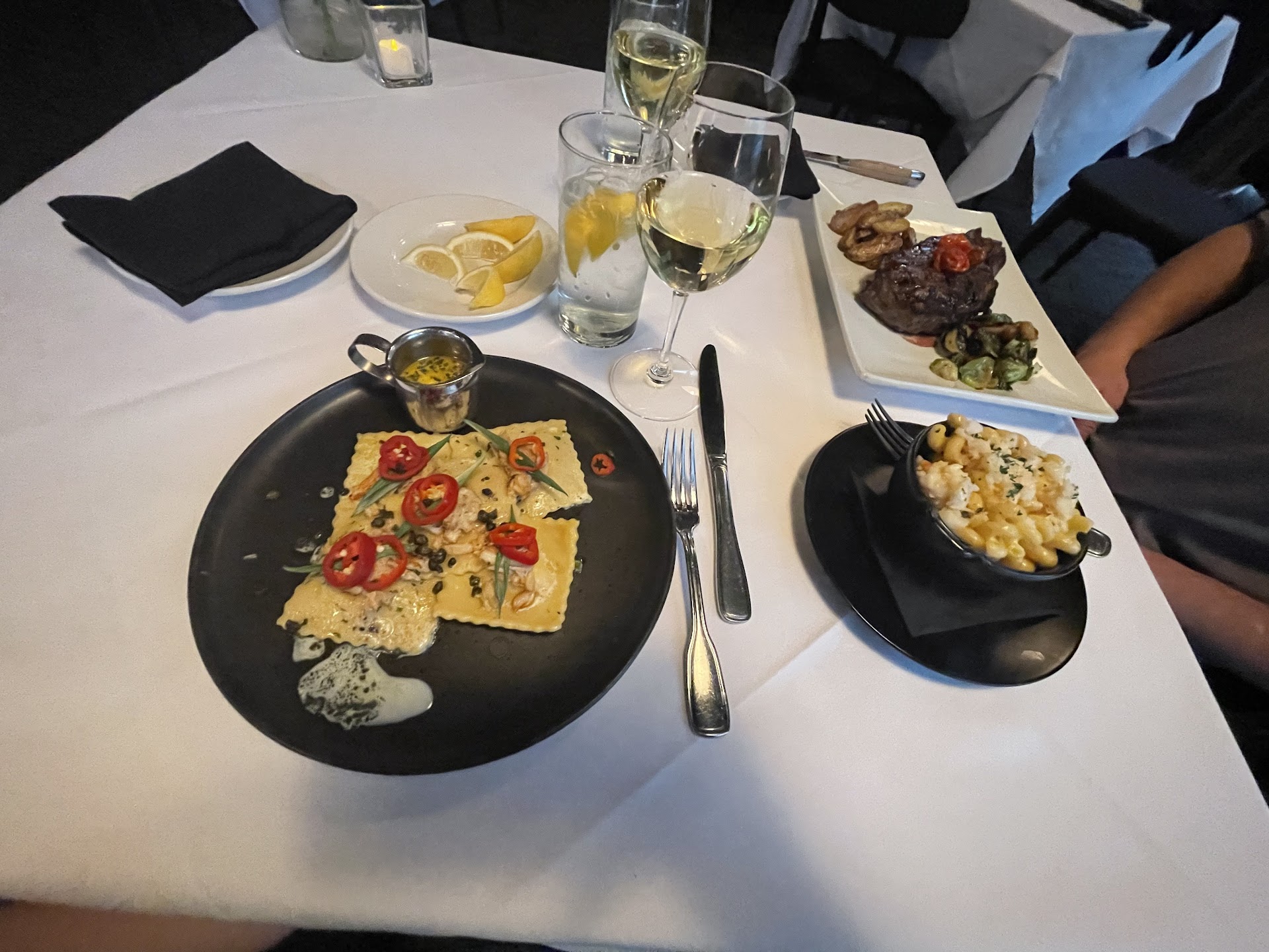 Read moreMy entrée was great. My cousin's steak was too salty (I like salt, but it caused her to have significant swelling that night and the next day). The menu needs to be more detailed and specific, as I ordered the Bone on Toast (and it did not describe what it was, but only described what kind of sauces/jams/toppings it came with). When the appetizer came out, I found out it was a large bone, cut in half, with exposed bone marrow (to be spread on small pieces of toast). This was more of a culture shock, really, as I had never had this before). I would not have ordered this if I knew what it was. That was a disappointment, and I felt bad that they made this for me, so I did not return it. (I did try it, however, and it was not something I would order again, but not because of how it was prepared, but just because it's not my 'cup of tea,' so to speak). The flavor of the bone marrow was not awful, but the texture was very fatty-like, and I couldn't get past the fact that my dog loves to eat this! The main issue I had was that I just wish I knew what I was ordering! (I should have asked the server, but did not). This place was great, otherwise, and I would return! It was a bit pricey (for 6 adults (5 with alcoholic beverages) and the other with water, the total was around $100 per person, after a 20% tip. The atmosphere was great, and allowed for conversation, with music in the background. Overall, a very nice place! I learned that there is another restaurant in a nearby town, with the same options! I'm from Florida, so I don't know much...