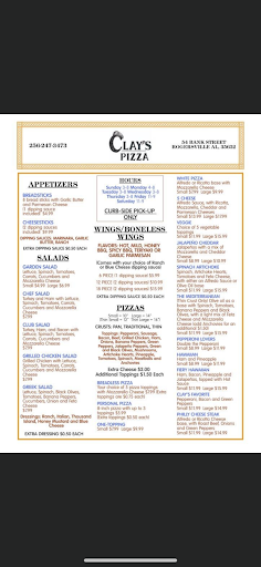 Read moreWell we were looking for a different pizza place in Rogersville when I saw the reviews for Clays. I figured it can't be as good as everyone was making it out to be. Well it is as good. Wife and I really enjoyed our first pizzas from Clays and will return probably this weekend. We ordered smalls each and it was enough for us to eat on for two days. Loaded with cheese without paying for extra. The crust is magical. It's done, not burnt but somehow still extremely soft. Also enjoyed the fact the do curbside delivery.
