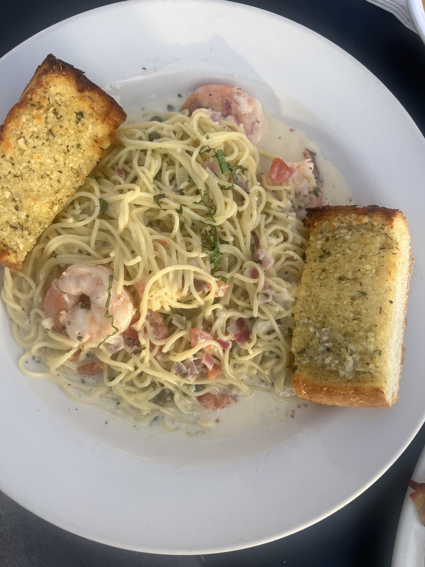 Waited an hour for our food, waitress too busy sitting down and socializing to even tell us our food was taking so long because a large group came in before us, or even acknowledge us when we needed refills on our drinks, or tell her the kids didn't get their cherries for their Shirley Temple's (half the reason they wanted the ST's). Watched others arriving after us eat and leave before us. My food came 10 minutes before the other 4 in my group, two of which were special needs children. I wasn't about to eat in front of the kids when they were hungry, so my food got cold. Eventually spoke to a manager, who said it takes 30+ minutes to cook pasta. Really? Google says about 15 minutes. The other 2 adults had salads, but didn't get them til after we asked about them from the server who brought everyone else's main course food out. One of the adults in the group ordered GLUTEN FREE pasta because she has a sensitivity, but there were REGULAR NOODLES mixed in with it. The only good things were the food tasted decent and after complaining to the manager, we got 20% off our bill. Bottom line, none of us are ever going back.