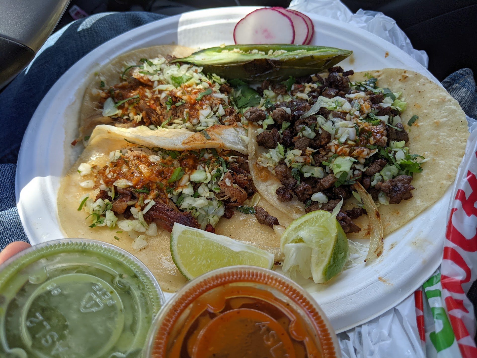 Both the red and green sauces here are straight up fire🔥 Bright on the flavor, and just the perfect amount of heat. Salsa cups: 5/5