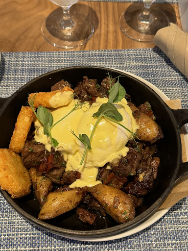 Read moreWife and I went for breakfast. We were greeted immediately and seated promptly.She ordered a bacon omelet, I got the steak and eggs. Service was friendly and efficient. The food was excellent! Good coffee is important and they nailed it, strong but smooth. And the creamer is served in a small pitcher that is ice cold. Nice! Presentation was good. My wife enjoyed her Omelette, the potatoes are round, crispy and delicious My steak and eggs were fantastic. Biscuit was hot and fluffy The steak itself was prepared perfectly, and was honestly one of the better ones I've had, tender and very good. The chimichurri sauce that came with it, let's just say I would but it by the quart to take home. Wonderful The vibe to the place is nice, upscale but comfortable. Clean and spacious We both enjoyed it very much and look forward to returning and trying other things....