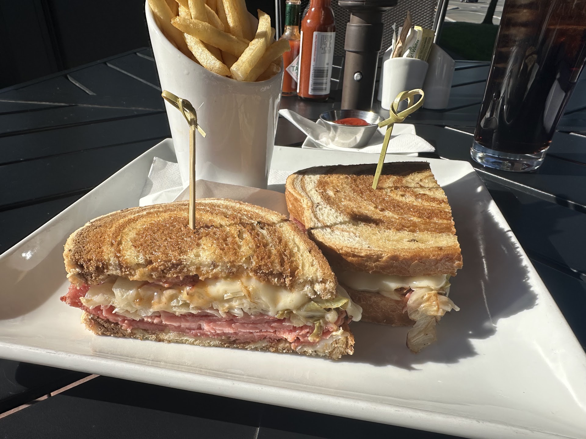 Read moreSo I was going to go to a different location nearby, but they were not open yet, so I happened upon this little gem just down the street!! Let me say up front it was lunch time and they were SLAMMED! I chose outside seating and sat right down. Thirty seconds later I had a menu and my drink order placed by a wonderful wide smiling waitress. 2 minutes later I had my drink and ordered the Reuben sandwich.
