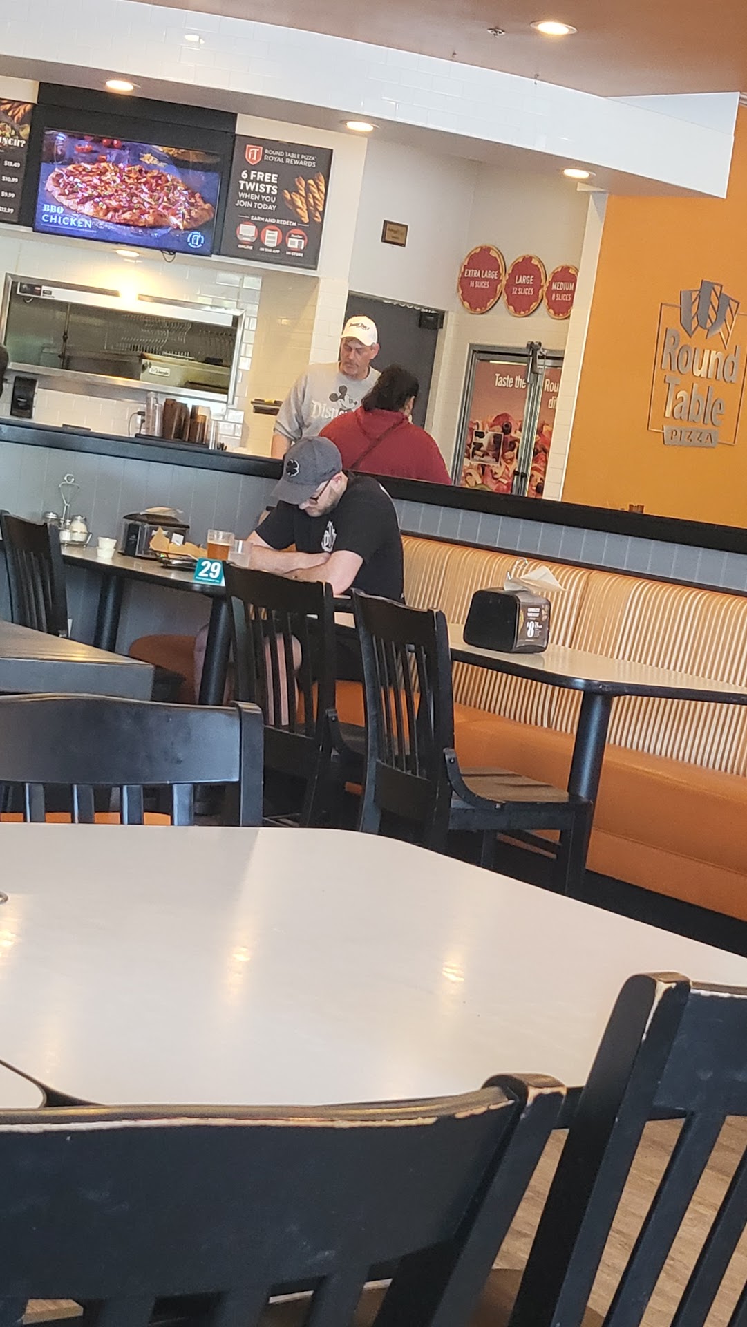 Read moreI ordered a pizza online and the said it would be delivered in 45 min. I called when an hour had passed and the person I spoke to said it was a 2 hour wait before he even looked up my order. when he did look up my order he told me it was out for delivery. My wife and I waited another half an hour before we called again and the man we spoke to told us it had just went out for delivery 15 min ago (so I guess they were lying when they said it was already out). when the delivery driver got here I very nicely told her that we called because they said it it went out quite a while ago and she told me that she had 4 deliveries and if I donât like it to call the store. the pizza she dropped off was burnt in several places and very cold. I paid 45 dollars after the tip for this pizza and they were rude and the pizza was horrible, besides the fact that it was burnt and cold, it tasted like green bell pepper and had bits of onion in it, neither of which we ordered it with. I have an allergy to raw onion so for me it was a no go. I have been ordering from round tables in multiple locations for around 30 years but I believe this will be that last time. I guess I will be ordering from mountain mikes...