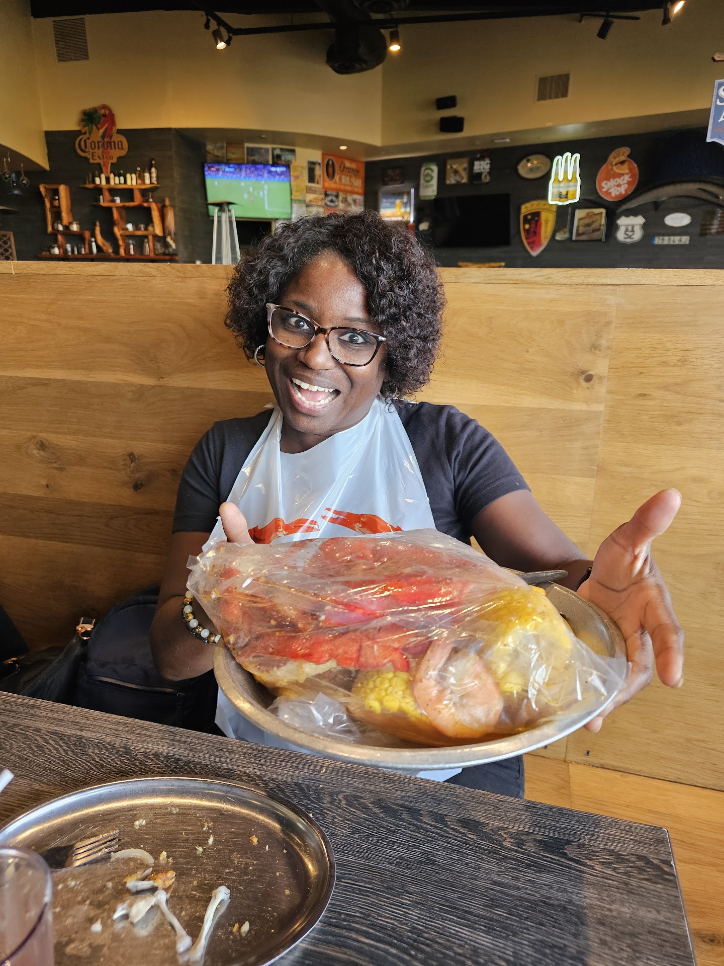 Read moreOverview: Busy mainly seafood boil sports bar.... food cooked in a plastic bag.