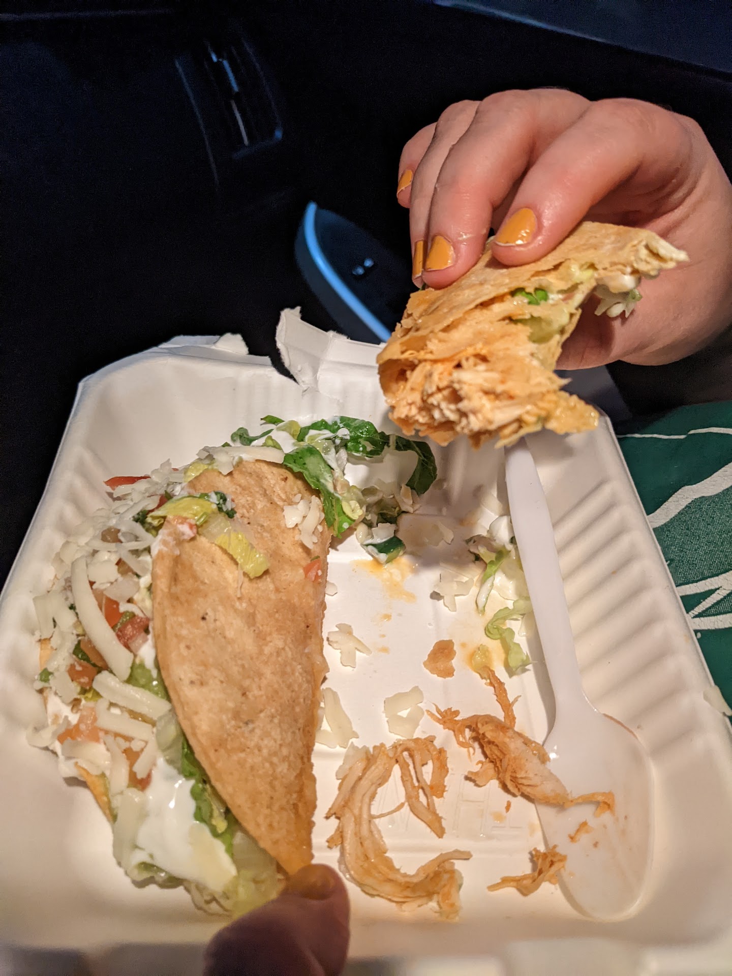 The vegetables like shredded lettuce and diced tomatoes are always bright and fresh. I've never gotten old tomatoes here. The cheese and sour cream are always a cold and perfect and they bring everything together by providing a cool and tart counterbalance to the salty meats and fried oily shell.