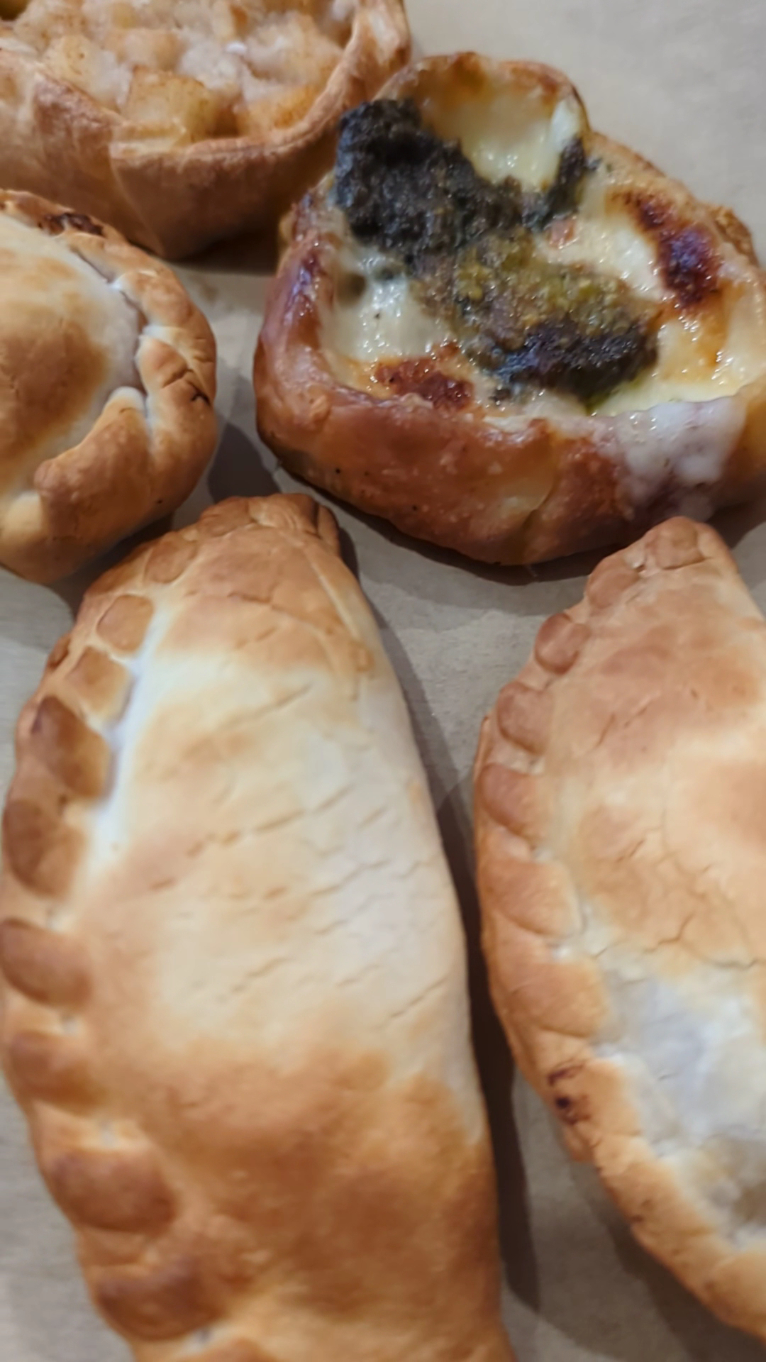 Featured here are the Creamy Corn, Traditional Beef, Steak and Ham. Small little bites of goodness. They even stamp them so you know which is which. Disclaimer, They also have a bacon plum and cheese artichoke that didn't make the picture because ...thry were already in da belly.
