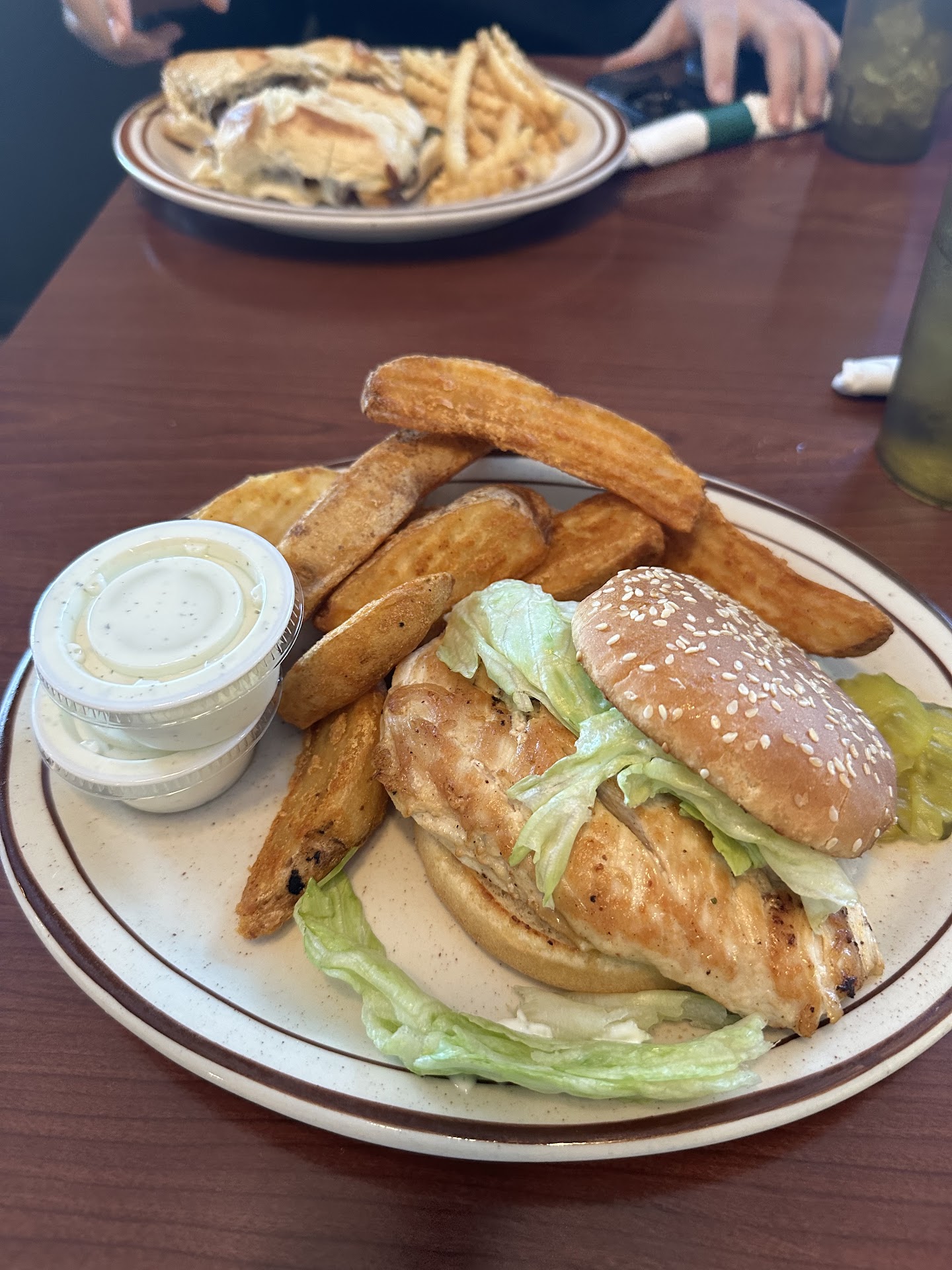Good was good, but the options were limited. The waitress was pleasant enough, but the first thing she said while we were looking at the menu that half the menu was unavailable. It happened to be the one with the main entrees. So basically, it became a hamburger joint. UPDATE: It's December and I found out I had visited them at a bad time. I stopped by for dinner. I had the fried food with wedges (Fish and Chips) and it was delicious. It comes with salad bar which is the best one in the area. The soup included with the salad bar was beef and barley. I must say I'll be back to try other things...