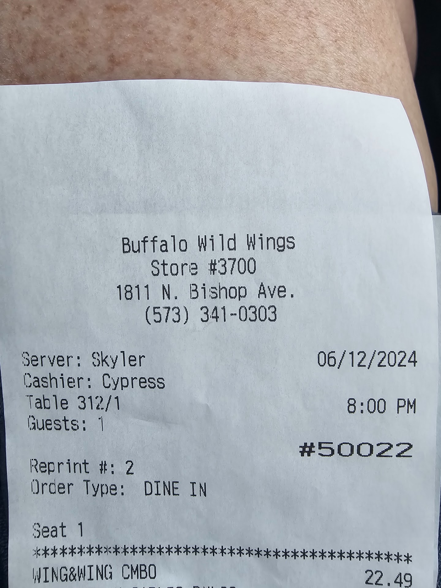 Shortly after I was seated, I was greeted by a waitress named Reese, who made the experience even better. She was exceptionally polite, friendly, and had a warm smile on her face throughout our interaction. I explained that it was my birthday and that I wanted to claim the 6-wing birthday offer. She promptly asked for my membership details, which I shared with her.