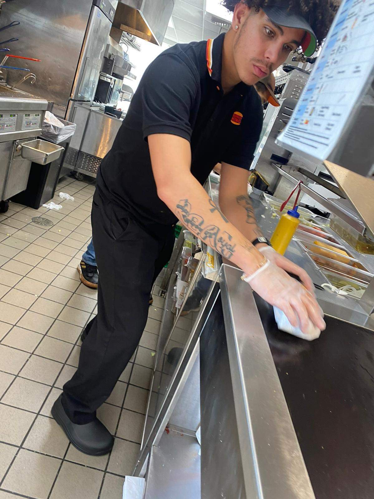 The restaurant had only two employees on duty. The gentleman at the register was working hard and as fast as you would expect during a busy evening period. The food prep worker gave the appearance that he was high and had he been moving any slower, he would have been moving backwards.