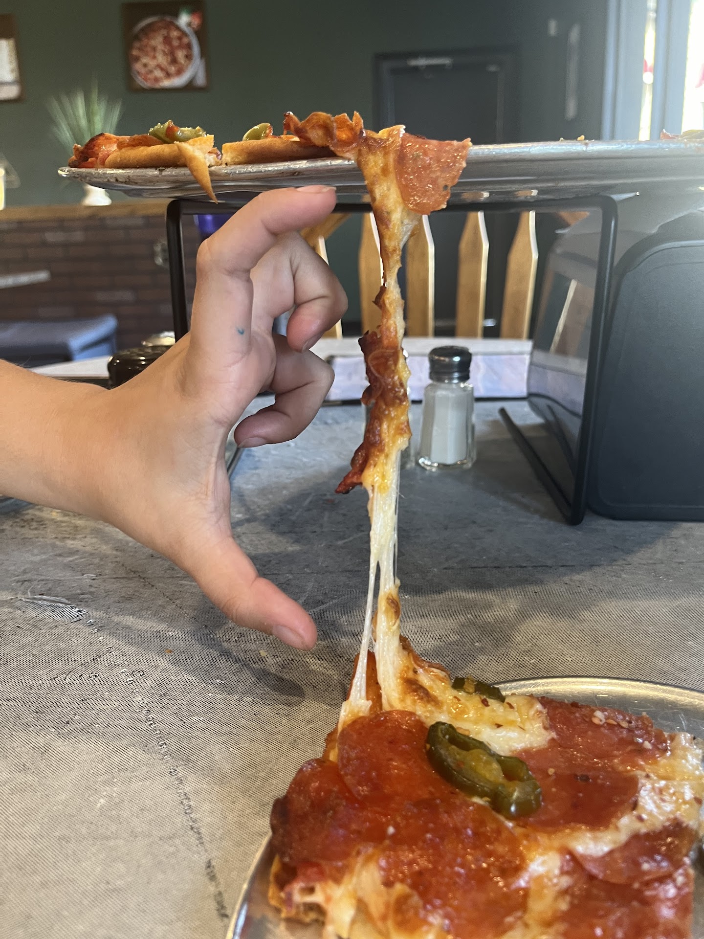 Really good food! The pizza comes as a thin but you can make it thick for extra. Since this is a locally owned pizza place the prices are higher but they reflect that in the quality in their food. Service was good and relatively fast in total probably a 30 minute time frame from when we got in to when we left. 1 large pizza with split toppings including tip (which is expected since it’s a restaurant). As well as a side of the siracha cheese curds which came out very fresh with delicious ranch. The serving size was very small especially considering the price but tasted very good! All in all was 42$ not the worse priced food but not the best deal you can get in rolla. If yo7 want budget pizza just get dominos it’s literally less than a mile from pryors. Pizza was baked very well and the time frame was 3:30-4pm on a Sunday and the store only had one other table sat. Also the cheese pull...