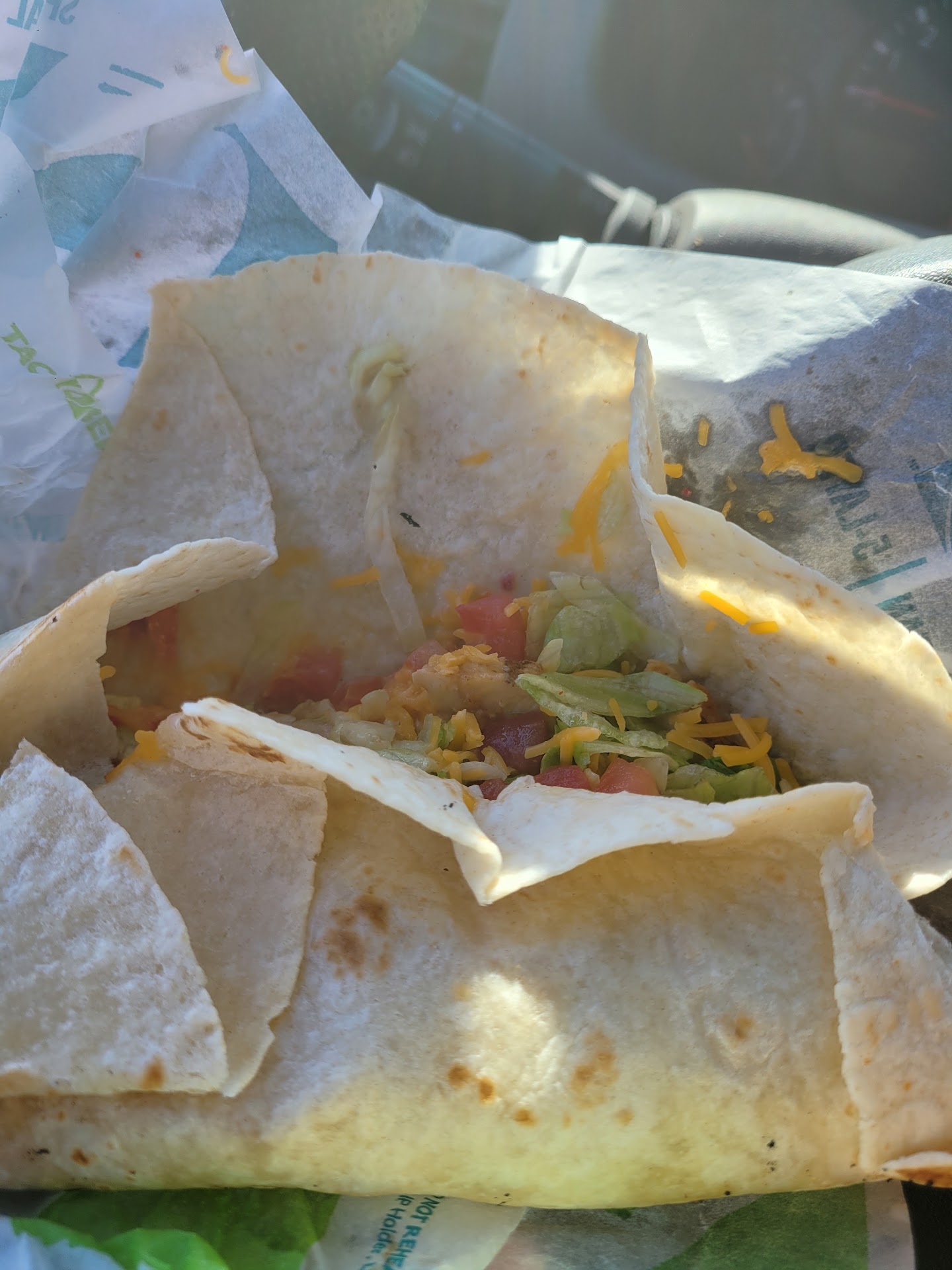 Ā Ā Ā Read moreI literally am just shocked. I made a mobile order ordered a crunch taco with potatos nacho cheese and sour cream. I go through check my food, I got a crunch taco with chicken, lettuce, Chipotle sauce, and cheese. So I go back through right, honest mistake, don't know how it happened but honest mistake, I go through and I tell them that my order was wrong, so she makes sure I have a receipt and I did, so I show it, and say it's supposed to be this. She is LITERALLY telling the line guys that's she needs a hard taco with potatos no lettuce sour cream and nacho cheese. I'm think great ok sweet and easy. I get home and go to eat my food, open the taco wrapper and my heart drops, how could this happen, the remade taco has potatos nacho cheese yes, but there's beef. Im ALLERGIC to beef, which yes they don't know but WHY WAS THERE BEEF TACO BELL LINE EMPLOYEE?? WHY WAS THERE BEEF?? š No hate at all to the girl working the window,...