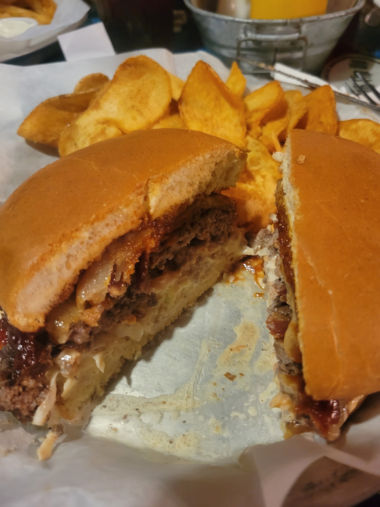 Read moreVery disappointed in the menu and our meal... the menu is very limited. The building is cute, but the dining room was dirty. The draught list is nice and they had a great cider on tap. The local cheese curds were delicious! But, the rest of our dinner was horrible! The medium hamburger was raw and the well done hamburger was burnt to a crisp, the house chips were way over salted and the fries were a disappointment. The waitress was new, but she was trying. We have no complaints with her. They weren't busy at all, but said that they were short handed to explain the dirt and how long it took to get our drinks. The location is great and we like the local drinks on draught. We want to like it, but it will be difficult to go...