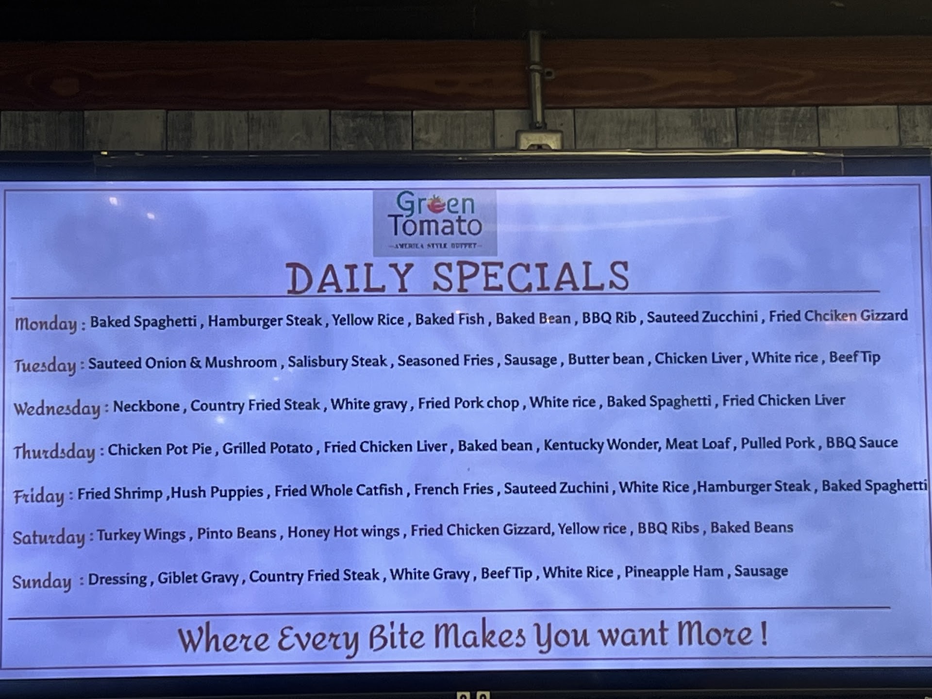The food selection was incredible, offering a wide variety of dishes that catered to all tastes. Everything was fresh, delicious, and beautifully presented. Whether you're in the mood for classic Southern comfort food, fresh salads, or delectable desserts, Green Tomato Buffet has it all. The quality and flavor of the food were top-notch, making it a truly enjoyable dining experience.