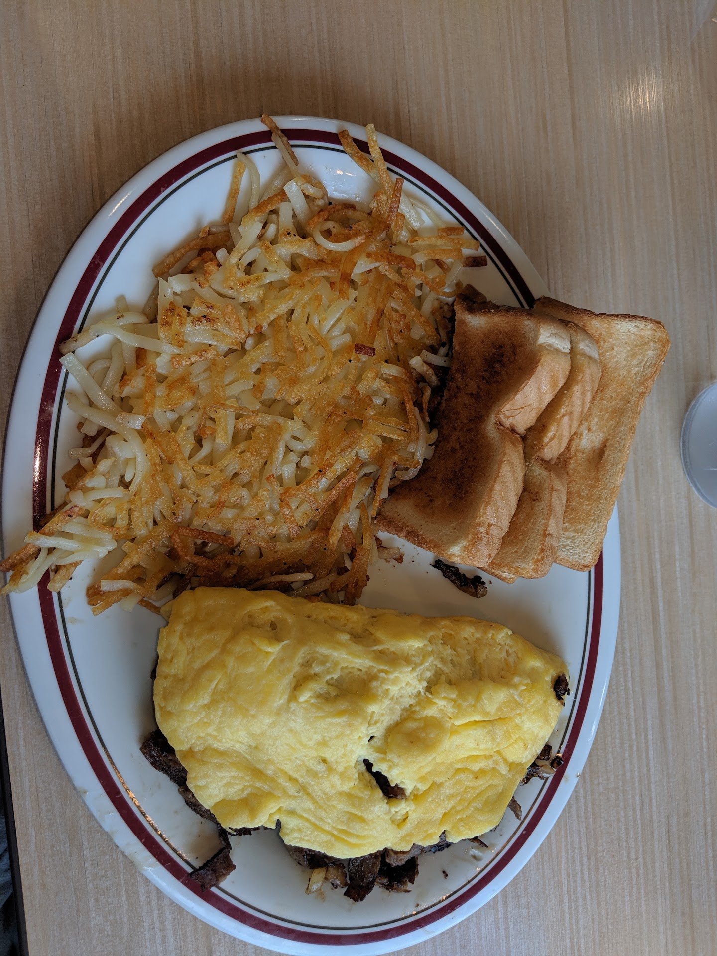 Read moreI came here about a year ago. I found hair in my food then. I decided I wouldn't be back. They replaced my food, but didn't offer any other compensation. Here I am in May of 2024, back in the place. It's been nearly 45 minutes and haven't received my food yet. I got eggs, a waffle, and turkey sausage. My wife ordered French toast, and we got scrambled eggs for the kid. I could've gotten this stuff done at home in 15 minutes or less. And they have an entire team of people making food here. It's been about 45 minutes since we ordered. The waiter brought us full refilled drinks, but that's it. I can't say I'll be back ever again. I gave this place another shot, and it missed the mark again. The floors in the lobby/dining area are filthy as well. I'll gladly got to the Awful Waffle down the street before I come to Hair House ever again. UPDATE: When I went to the counter to pay, the lady asked me if everything was good. I told her it was alright. She replied with "Just alright?". I explained to her that I was dissatisfied with how long I waited and I got cold food. Her response to this was that there were "several orders before mine." Ok, then why did I get cold food? Clearly it sat long enough to get cold. She even had the audacity to tell me to "make sure" to tip when I used the card reader. This was said to me as she turned her back. Also, the guy cooking looked like a tweaker they hired off the street. EDIT: I will not be giving this location any other chances, nor any Huddle House ever again. I read the reply the company left on my review. If they actually cared about the place, they would've made changes a long time ago. There are other reviews about similar experiences that are both old and new. Some are very old. All I see are lies in Huddle House's responses. If I could get a refund of my nearly $40 meal, I would. I feel shame that I even took my wife and child there. Everyone I've told about my experience asked why I even went there. What a joke Huddle...