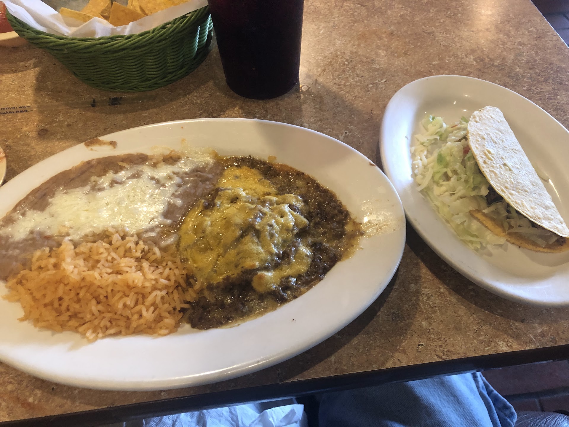 Read moreThis used to be our favorite neighborhood Mexican restaurant. Today I had the worse meal in the many times I have eaten there. I ordered a Chile relleno, taco, rice & beans. The Chile relleno was a blob of some kind of off tasting meat with a few specs of green Chille. The taco was a hard shell that you buy from the grocery store with some ground beef, a couple pieces of tomato, topped with some lettuce. No taste at all. The only redeeming thing was the rice and beans (hard to mess up). We asked for extra napkins, but only got lip service, (no napkins). Also the server that took our order never returned to see how our meal was, and we had to flag her down to get our check after waiting many minutes. I guess I’ll have find another favorite restaurant in...