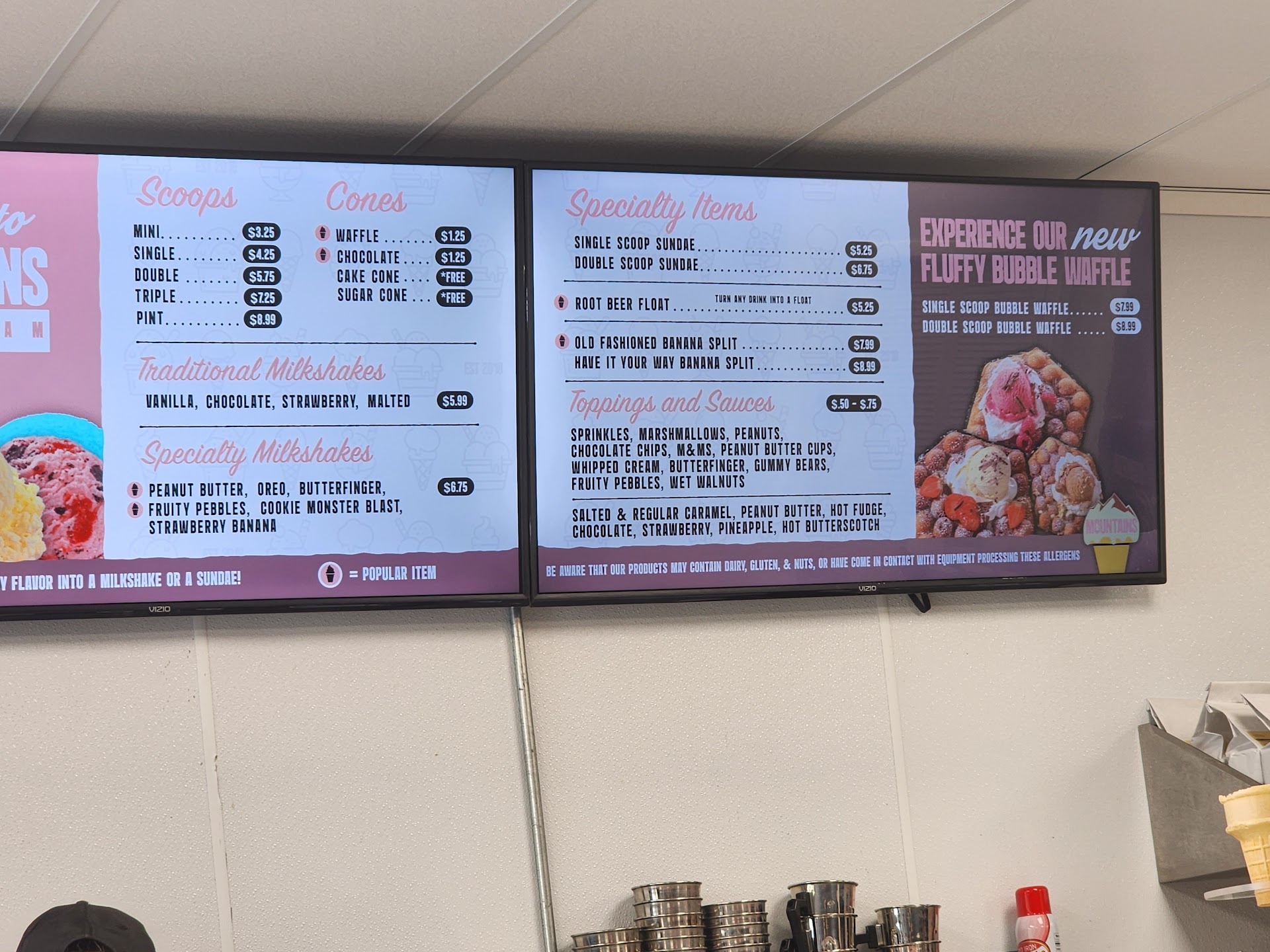 So let me start of by saying that the worker was friendly, the place was clean, prices were decent and the icecream was delicious!