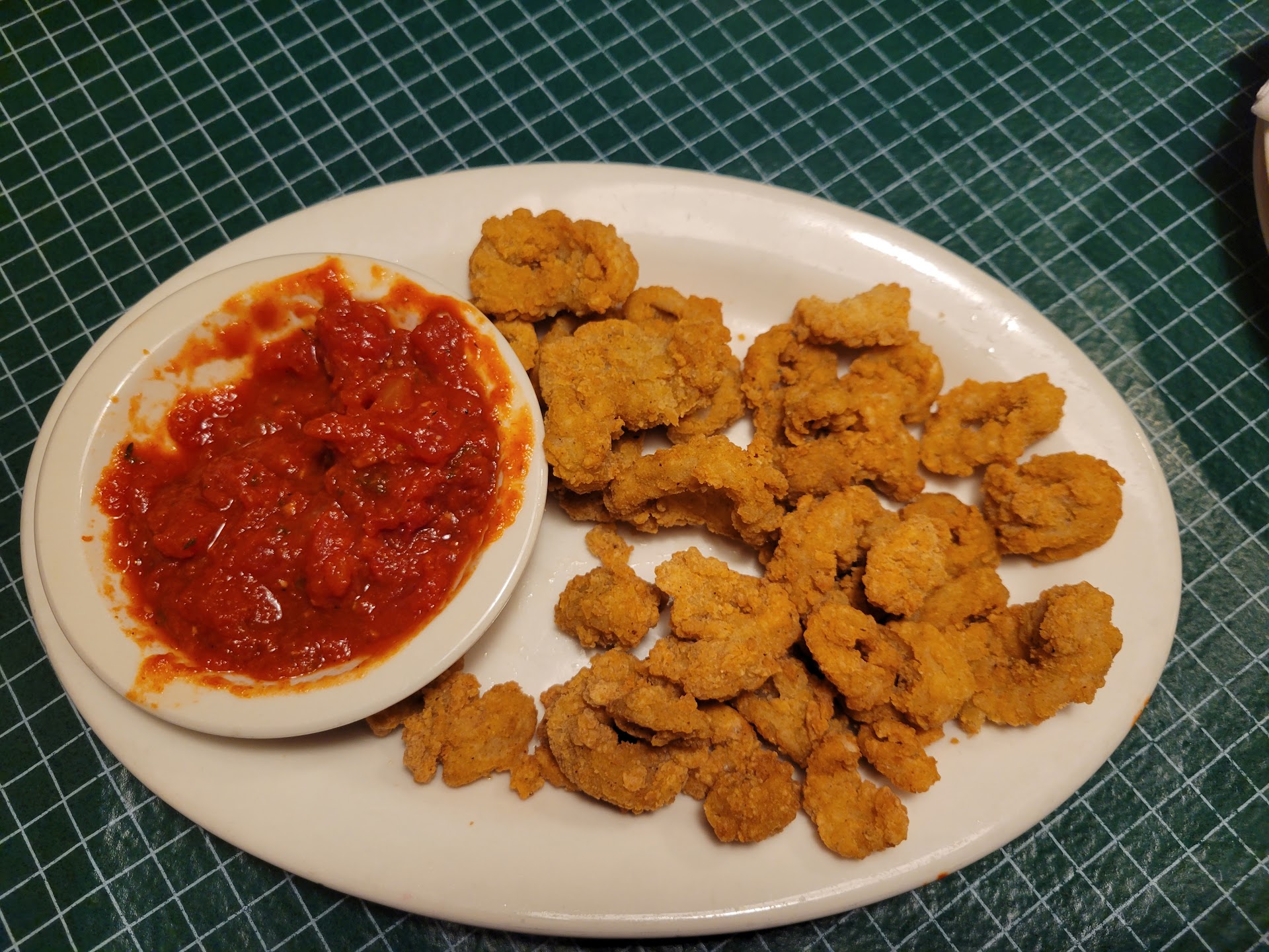 Ordered a glass of pinot grigio and s.o ordered a beer. We choose the calamari for our appetizer. Not a heavy batter and very tender. The marinara was to die for. Chunky and bursting with flavor, and slightly warm.