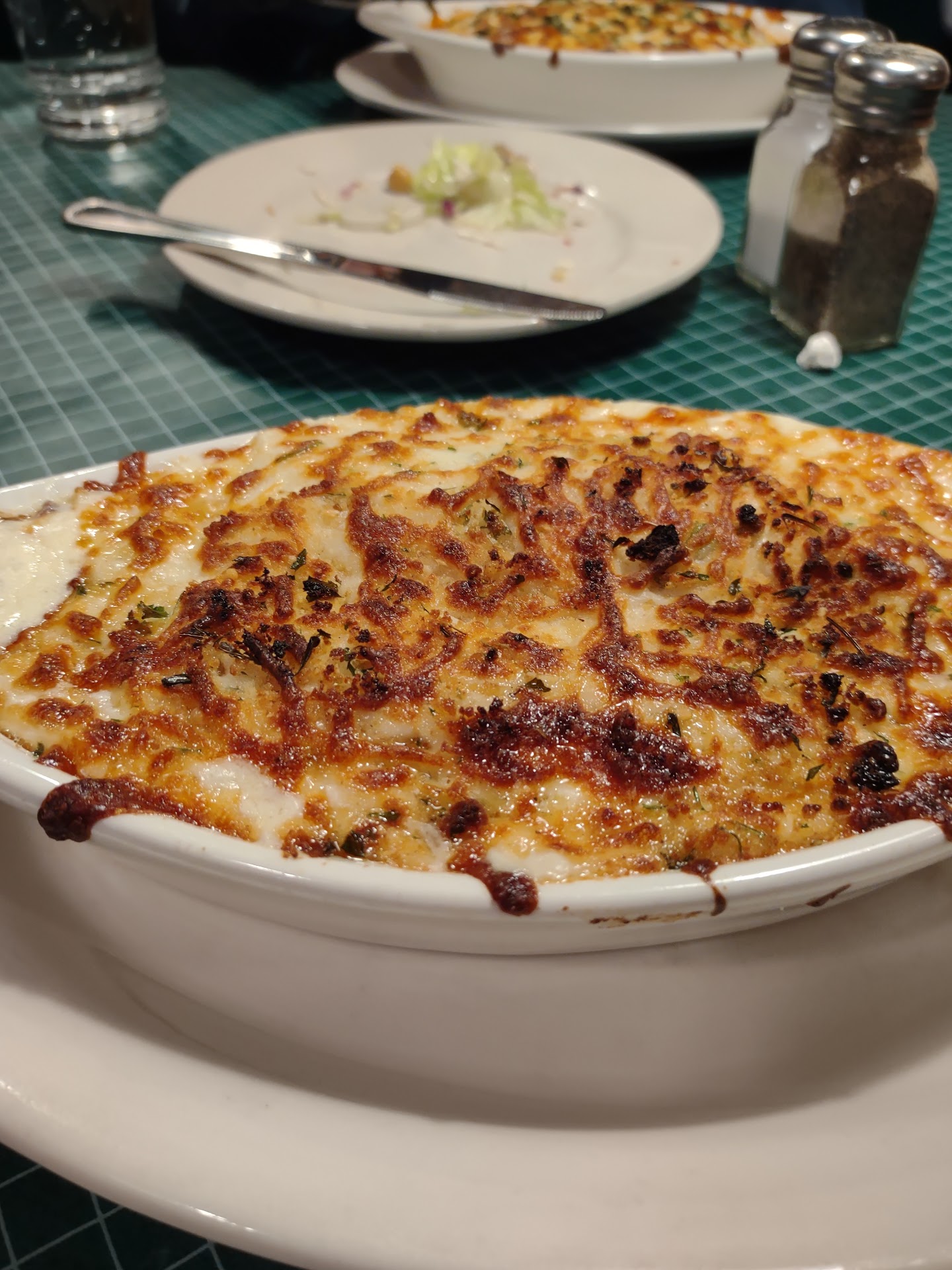 Dinner arrived shortly after along with our rolls. I ordered the Cioppino s.o ordered chicken parmasian. His was cooked perfectly and he cleaned his plate. Mine was out of this world. I've never had Cioppino before and I would recommend to any seafood lover. It is brought out in the pot it is cooked in. Packed full of muscles, claims, shrimp and snapper with a few scallops all on top of linguini pasta.