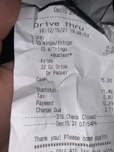 I was a employee here and I will be the one to tell yu DO NOT EAT HERE this is the worst restaurant and group of managers I have ever worked with in my entire life ! We have had about 20/25 new hires within 2 months of being here and only about 2 stay. We have had numerous complaints about chicken being raw because they put new people (kids) in the kitchen that don’t kno wat they are doing because they weren’t properly trained. The reason we have the score that we do is because we were informed before the inspection people came. There are roaches everywhere they DO NOT CLEAN right most times they don’t clean at all. Our Gm is more worried about feeding her family more than customers. That’s why sometimes yu will get a wings and things with little to no sauce . They do not care about wat they give yu all to eat just as long as you’re out of their face! If yu come back with an order that was messed up they will look at yu like yu are the problem. This store will NOT last. It should be shut down immediately! Most of our employees won’t even eat from here all the good cooks we do have they run them away. They don’t care about customers they just care about getting their bonus. Save your money and...