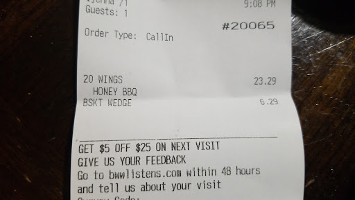 Read moreSince they had a special every Monday and Wednesday in may where you can get all you can eat boneless wings for $20, and we love BWW, it was a no brainer. We waited around 10 min to be seated. The curly red hair girl was talking to a customer about stuff unrelated to the restaurant or the food industry at all for a good amount time. Another staff member came by and joined the conversation while we are still waiting. The customer was leaving btw so they were just chatting because why not. So finally we are told it is open seating. Once we got in the dining room, there were many tables that were not cleaned from previous customers. We found a hidden booth for two in the back that was cleaned from garbage but not wiped. The server came by and wiped it and then disappeared for 10 min. Then we ordered drinks and an appetizer. We get our fried pickles, that we absolutely delicious, in 10 min, but we are still waiting on our cocktails. We finished the pickles and finally our drinks arrived. Then we ordered. 15 more minutes and a food runner brought our wings. Our server nowhere to be found. We finished our first order of wings and got a second one. Another food runner brings the new order. Our server then comes and asks if we want more food or another cocktail. If we need to wait that long, no thank you. So after we were done, we just got our check which also took forever and left. The restaurant was very dirty inside and food was all over the floor. In need of more staff that...