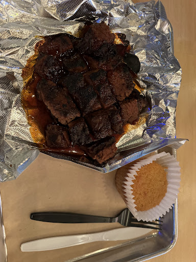 Ā Ā Ā Read moreThis was my first time getting food from Doc's. I was initially going to get a burrito next door, but the sheer number of people eating outside at the patio tables, and the extra $20 burning a hole in my pocket suggested that I should get a slab of baby back ribs. I was worried that showing up at 7:30pm on a Friday evening might have them sold out, but I was in luck. This is the type of place that apparently has to slow cook the food well in advance, so if they sell out, well, that just means that business was very good that day. Which in turn speaks strongly of the quality of food. Since I was riding a motorcycle, I asked that it be split into two halves to fit in my tank bag, and they happily obliged me with a carryout bag that wasn't obnoxiously large. The resulting 2 half-slabs were wrapped in saran wrap, and then in tin foil. This helped the meat stay tender and not get dried out. I like that they have a standard dry rub on the slab, and give you a choice of sauce. This way, you can select how much or how little sauce gets slathered on. I went with the sweet, but would also like to try the spicy next time. I first had a rib with just the dry rub and no sauce in order to judge the basic goodness of the meat. It had a nice flavor and texture overall even with no sauce. The rest I drenched in the sweet sauce, and it was a nice compliment to the dry rub. I really only needed to eat a half slab, and save the rest for later. But the second half slab was insisting that it needed to be savored right then and there. So, there you have it: 2 sticky thumbs up, five stars, and a well deserved reputation for quality bbq. I'm looking forward to...