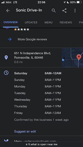 Read moreWe are discussed at this Sonic. How can this location stay in business with such a horrible history? Are they really that desperate to make money? I wouldn't give them any stars except I had to being it will not let you leave them all blank. We tried to order a sonic cheese burger with no cheese but add extra onions. That order came up on the screen (only cheese) (only onion) My husband tried telling the lady taking the order 3 times that we do not want cheese n our screen it says only cheese. She reassured him that the burger will not have cheese on it. He also ordered a foot long coney dog no cheese and 2 shakes. Whe we got our food the burger had cheese on it. We tried telling the guy that delivered our food 3 times that the burger was not supposed to have cheese on it that we want it remade. He acted like he misunderstood because he started arguing with us. We told him we went over the burger 3 times with the lady taking the order he kept telling us we are wrong n that it was supposed to have cheese on it. We finely got through to him that we wanted the burger remade with no cheese. When he brought out the burger it was right. I told him I wanted his name as I was making a complaint. He told me he didn't care about me making the complaint and told me his name was David and that he's the manager. He kept arguing with us to the point I got out of my car wanting to beat his a**. He kept cussing us out and flipping us the bird. I would not recommend going . Definitely not taking no kids there that's not what children she hear or see. Yeah crazy...