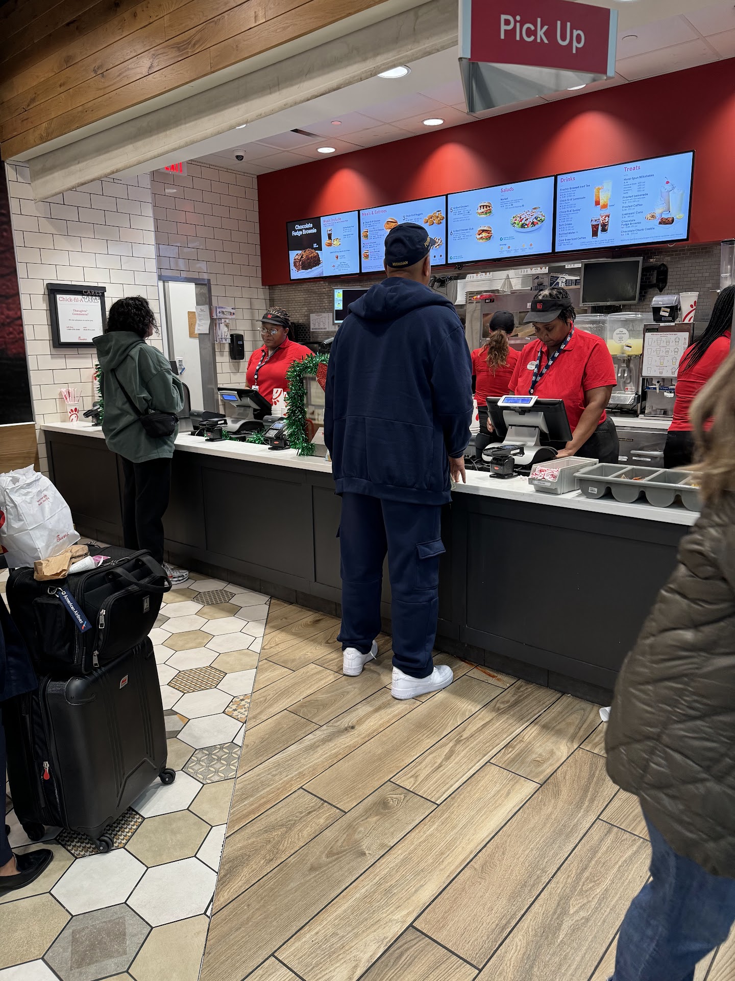 Read moreIn the middle of what can only be described as a horrible day, the one thing I had to look forward to was food. First, I ask for no pickles. There are pickles. Whatever, I just remove them. Normally the bread tastes a little soggy/vinegary but I can almost ignore it. But then the chicken is clearly undercooked. My gag reflex is activated now. I won't be able to eat for a while. I drank the drink at least. Did I mention these are airport prices? Meaning a 50% Mark up. One of the rare times Chick-fil-A just sucked. Just ready to put today behind me. Basically I paid $15 for a lemonade and a couple of waffle fries. I give them 2 stars because it's probably just a lack of...