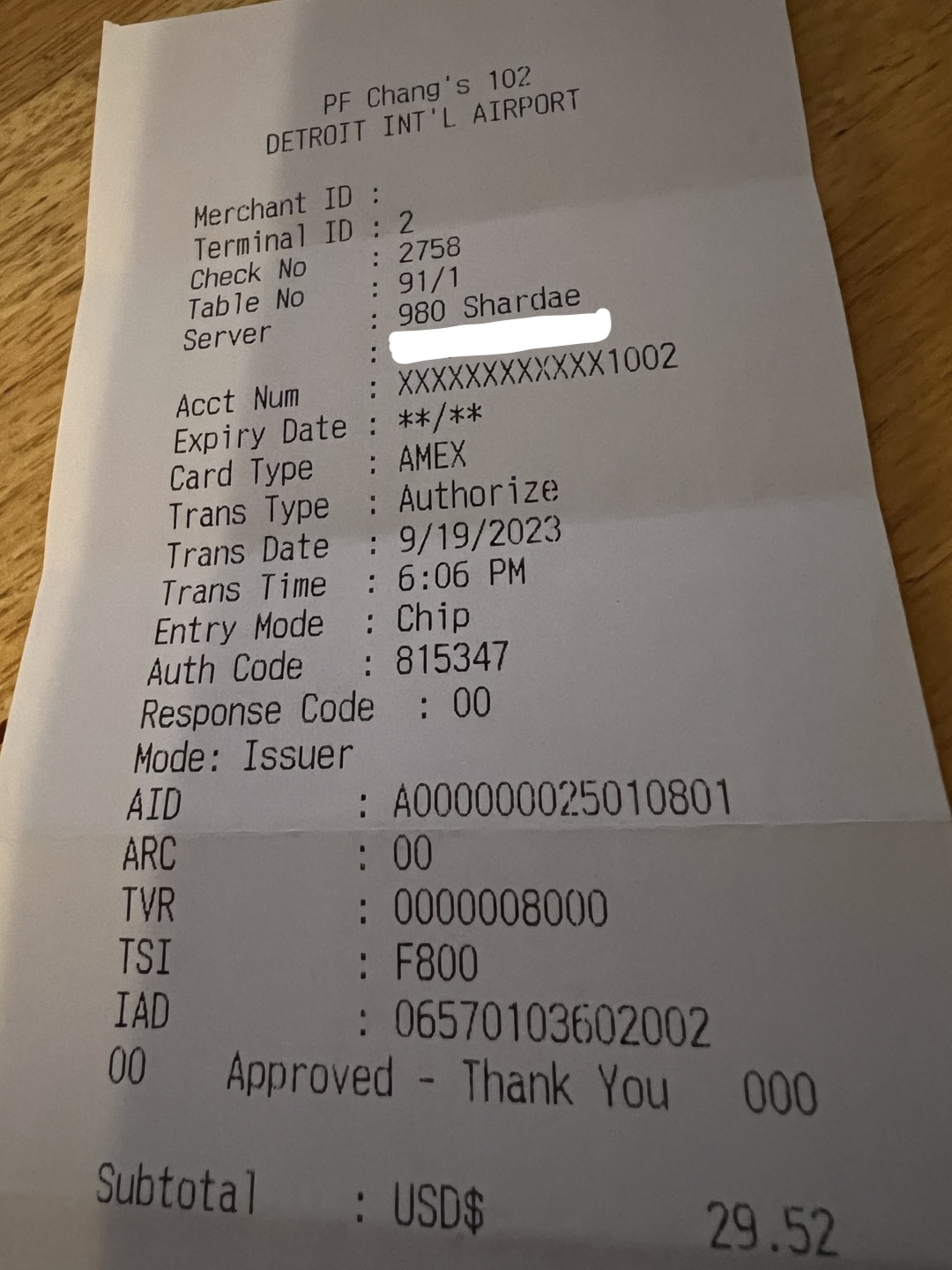 I’m not writing this to drag our server. That’s also why I omitted her name. This is a training and management issue. Be better, P.F. Chang’s at DTW. We’re...