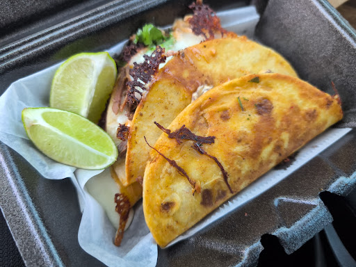 Read moreBirria tacos were legit! The only reason they didn't get a 5 was there was too much sauce on them.... Birria was nice and not dry.... There was great cheese with good cheese pull... Shell was perfect crisp! I wanted to give them a 5 but I'm sure you can ask them to go light on the sauce... I squeezed the lime and it helped to cut through it nicely... Tacos were delivered out to my car got good service! Atmosphere could use some work.. maybe come picking up around the areas and what looks to me there is oil being dumped out the back of the truck and leaving a spot on the dirt resembling oil or something.... Maybe some sprucing up a bit..... I would go back to try something else no...