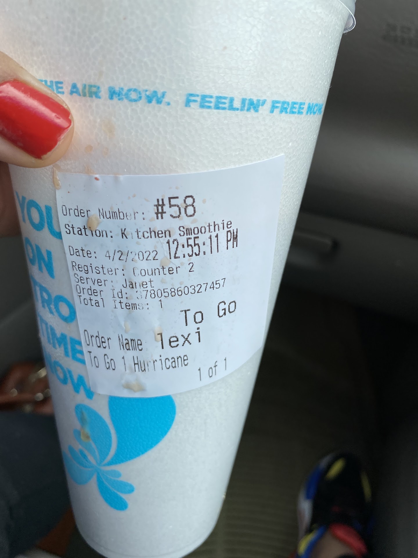 Read moreI usually enjoy coming here but today was very different. My office ordered smoothies. There were only 4 so it wasn’t a huge order. When I walked in I was greeted with attitude. I stood to the side patiently waiting for my orders. I was told ohana breeze was discontinued so I would be getting it without the blue. No sorry no offer to make something else just take it or not. I was picking up 3 orders. She gave me my first order and then told me to leave. I told her I was waiting on my other 2 orders. She then told me that my order they were out of stock and I had to cancel it online. I went online to cancel and it told me I couldn’t cancel. She told me oh well get out. You have been giving me nothing but attitude since you walked in. I literally only spoke when they asked the names on what I was picking up. I didn’t give attitude until she told me to get out without giving me what I paid for or giving my money back. She told me she was a manager and her name was Shakar. I refused to leave and called another store to see if they could offer some help as to what I do now. Customer service was awful and we as customers have no way to handle when the store refuses to help. I will not be going back to this store again. I would hope someone from the store / district manager would reach out and advise how to handle a situation like this. I no longer feel comfortable placing online orders with tropical smoothie knowing that if they are out of something I have to fight to get my money back. It absolutely unacceptable for a business to treat their customers this way….. On a side note the floor was so disgusting I was literally sticking to it...