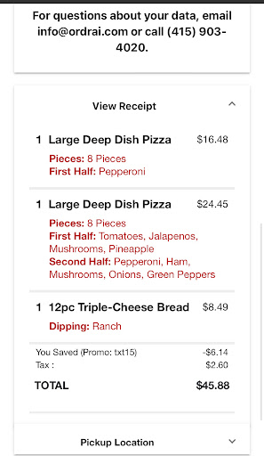 Read moreI had ordered two half-and-half pizzas. One pizza was half cheese and half pepperoni. And the other pizza was half supreme and half custom. The custom side had no meat on it. When we got to our destination and opened the pizza, the custom side had pepperoni all throughout it. I usually don’t have trouble with this location. I did the text to order like I usually do. They said they would text me with an approximate time for pick up. I never got that text. When we called to ask about it the employee seemed annoyed. Could be because the system wasn’t working, could be because they were busy. I don’t know. Then we got the pizza and it was put together incorrectly. Luckily we had a cheese option too but half a pizza was wasted. We also ordered the super special and they told us that that was not unavailable option. I just typed out all of the toppings on a custom pizza. They got that one...