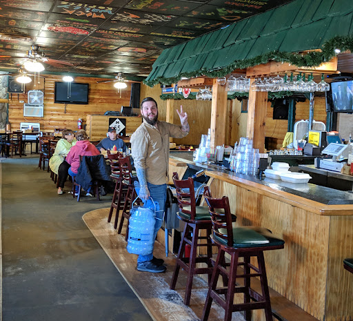 The M55 Pour House, on (of course) M55 in Houghton Lake is a great stop for lunch or dinner. (We didn't see a breakfast menu, so we're guessing they don't serve it, but we could be wrong.) The inside is your basic Northern Michigan pine scheme, but it's well done and serves to make the place that much more Homey. They've got a pool table and what appears to be a good stage/dance floor setup though it was thankfully quiet at lunch time.