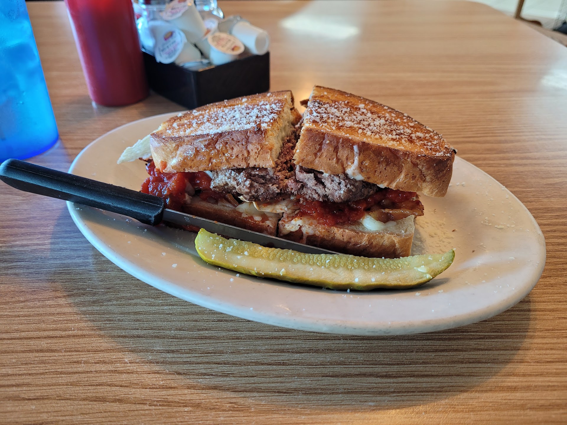 The food I had tonight was definitely a night and day experience compared to the morning time. While I may not return for breakfast to this place any time soon, I was relatively impressed with dinner. Their salad was plentiful and healthy, though next time personally I might ask for less shredded cheese. The Italian Steak deluxe sandwich for most parts was great. The distribution between the mushrooms, cheese, sauce, and bacon were very well done. However, the only drawback of it was the hamburger made for it. In the menu, it's listed as a 'patty' which is exactly what I got. Unfortunately, it left a lot of empty space on either side of the bread. I believe this sandwich would benefit tremendously from pounding out the steak thinner and allowing it to be throughout the whole sandwich. Past that, I should have added a pinch of salt to the sauce to help amplify the flavor of it. I now know...