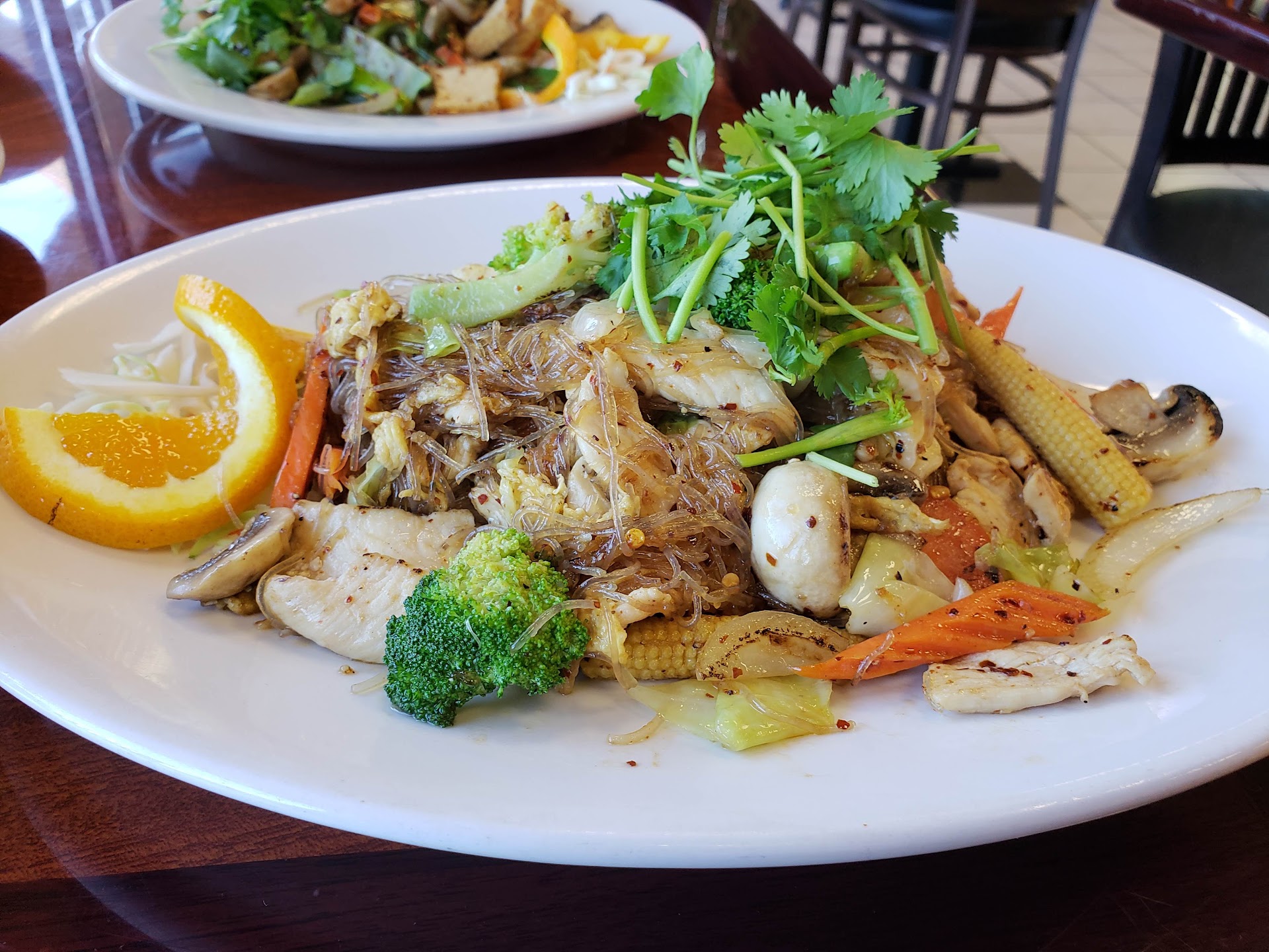 The girl with the blonde hair and piercings didn't know the menu and was asking us about it. She was there the first time we visited the restaurant at the grand opening (2-2.5 weeks ago). We asked her to bring extra plates so we could share four orders of food. She had to come back and ask how spicy for two of the orders because she forgot. That's ok we thought...no worries! Then the food was brought out and only three orders were there. We asked for extra plates again. Nothing. We waited at least 4 minutes. I went up to the front desk (where you pay). The blonde girl and another young man were there. They looked at me TWICE and stood right across from me (about three feet away). He went to the computer and she picked up a water jug, walked right past me to my left and asked a guy if he wanted water when he didn't need any. Very disappointed. :/ My family came all the way from Eastern Oregon and I told them this place was great...and they were excited and super hungry. She came over eventually. We asked a THIRD time for plates so we could eat. Our food was sitting for at least 6-7 minutes I would say...getting cold. Finally they came with plates. The blonde girl never came back to fill our water or ask about refills. Pretty sure she was avoiding our table. Don't know why, we never yelled at her or anything. My family is pretty nice. We understand that mistakes happen. Another young man was running around and working so hard he was sweating. He was doing all the work (the chef too of course) while two people did very little...wiping tables slowly, asking about water, and walking around sometimes slowly back and forth. That is why I rated it still high. The food was sooooo delicious and one person was working his butt off. I have eaten at many Thai restaurants...and the food here is VERY good Thai food. I will come back....maybe for take out next time LOL and a Thai...
