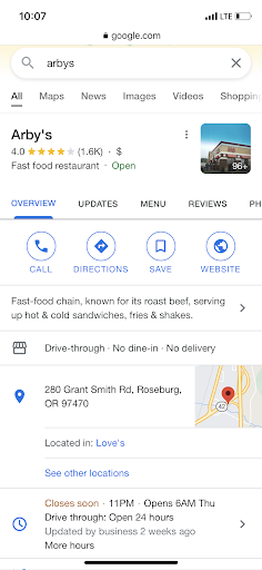 Read moreWalk in and front cashier was very nice. I had a blt wrap that was great, I also ordered mac n cheese which was on the sour side, could just be my tastebuds. UPDATE... I have only been to arbys two times, one as a kid in my state of California and 1 time in reno Nevada in 2009 and disliked it both times. I decided to try arbys here in roseburg at the loves gas station and I have been there 4 times, I went again tonight and I must say all four times have been nothing but exceptional! The entire staff is friendly, welcoming and eager to take your order. I've tried the chicken wrap, fish sandwich and the French dip with Swiss and I have enjoyed it all. They have excellent crinkle cut fries but last 2 times they have been very undercooked, but I just put them in my toaster oven to better cook them.