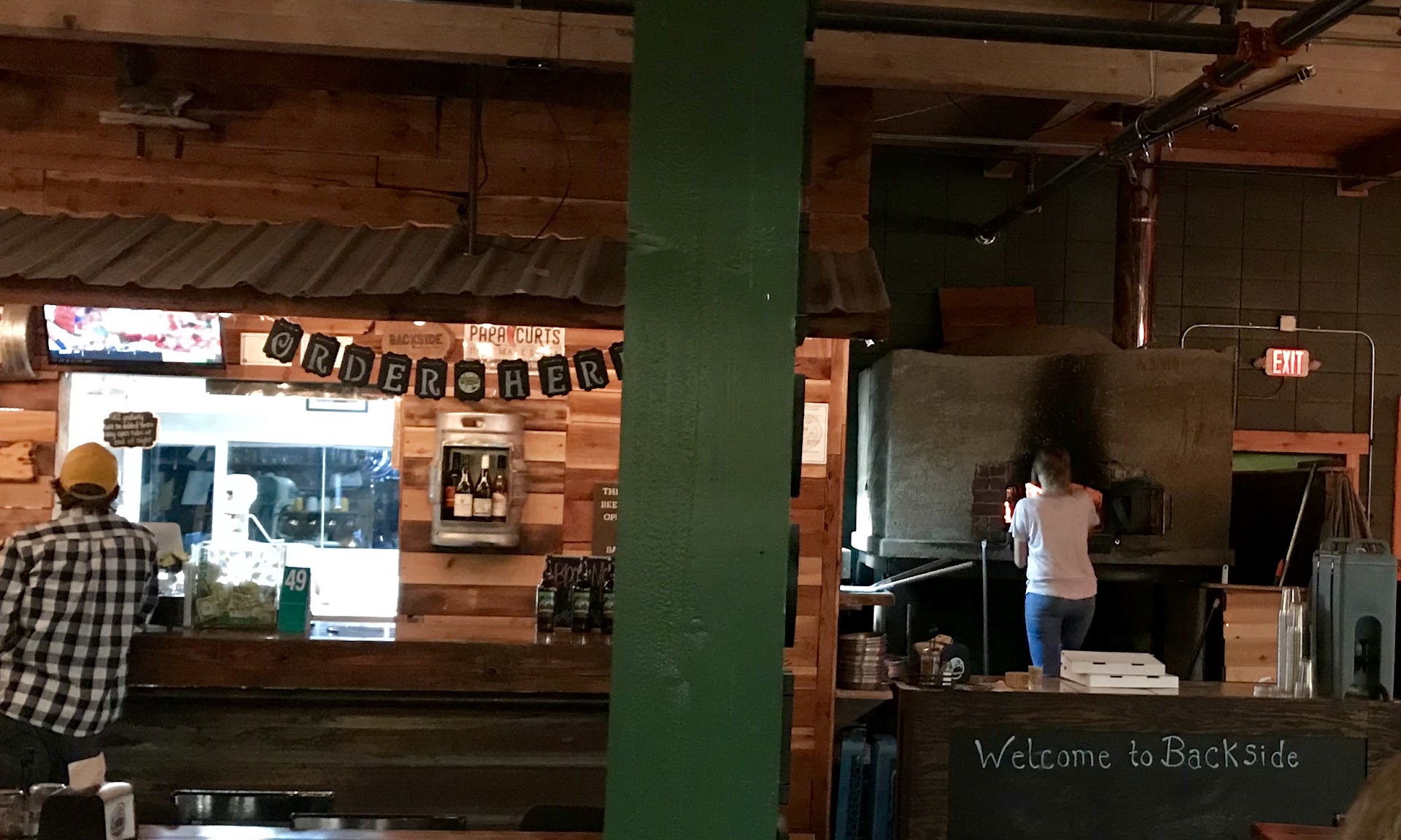 Read moreI have been to Backside lots of times but just for the beer (peach is my fav!). Never tried their pizza so decided to give it a try last weekend. Was very disappointed. The guy making our pizza was too busy flirting with some bimbo at the other end of the bar... My friend and I heard him say out loud "oh shoot! Let me go check on that pizza!" (Not speaking to us but to the people at the opposite end of the bar). He got our pizza out of the oven, plopped it down in front of us without saying a word and rushed back to his friends. The pizza was horrid! It was clearly over cooked, the tomato slices were WAYYYY too thick on the margarita pizza. The pizza fell apart. There was too much corn meal on the bottom.. I could go on but I think you get the idea. My friend and I each had one piece of a large pie and left the rest behind (what a rip off for $14!). We got the check and left. Did not feel like a valued customer at all. If it wasn't for the beer I would...