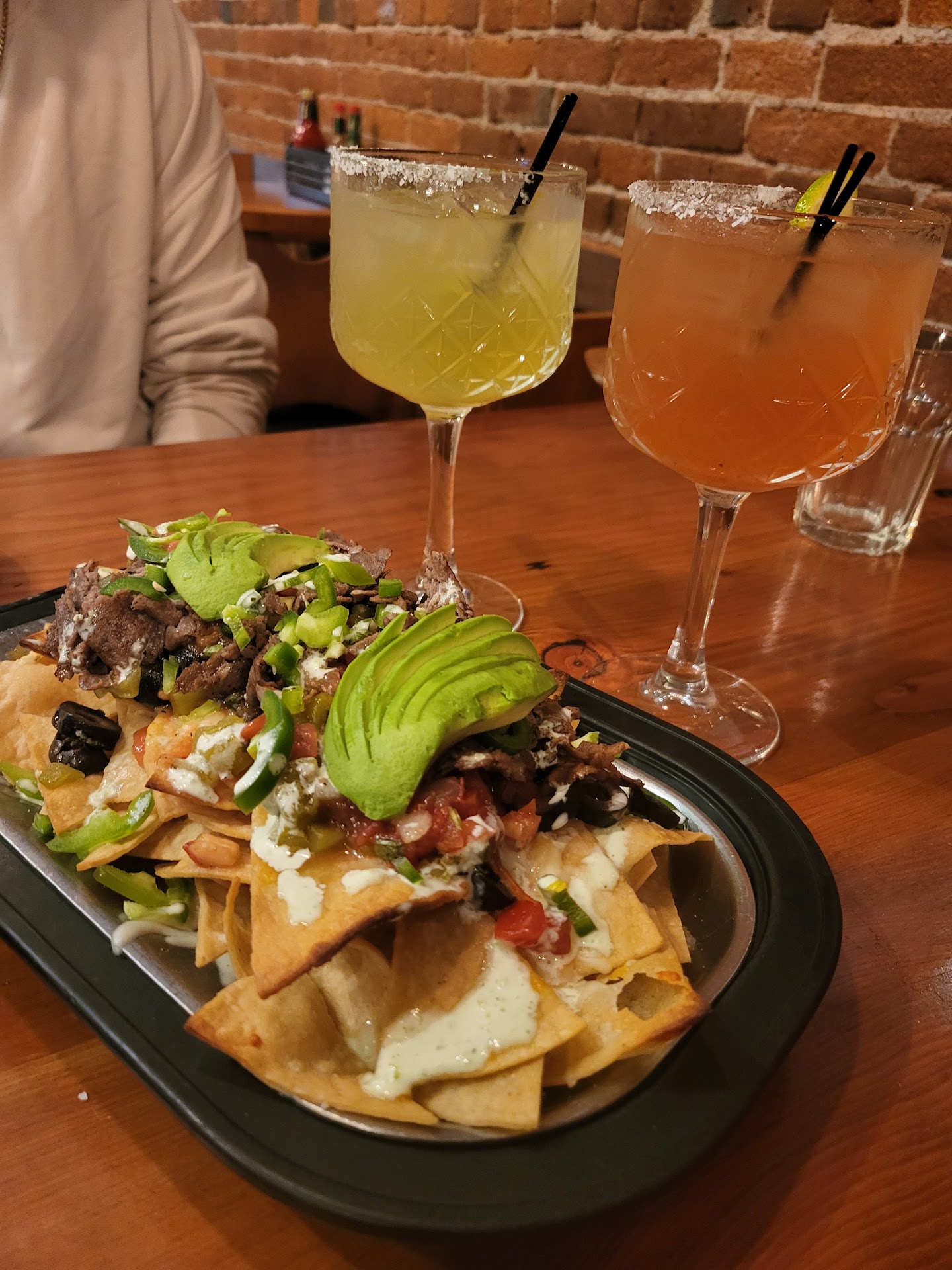 The food was good though. My salmon was good, everything was tasty. My girlfriends salad only had like three chips and just a whole bunch of Leafy greens without much else. The chicken on it was seasoned well though.