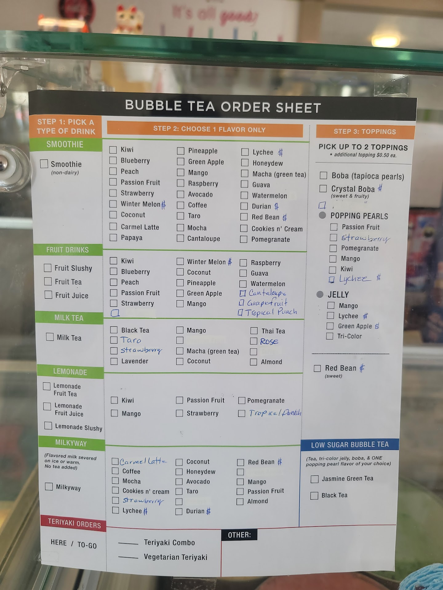 Read moreVery good teriyaki chicken. Wide variety of teas and toppings. Love it