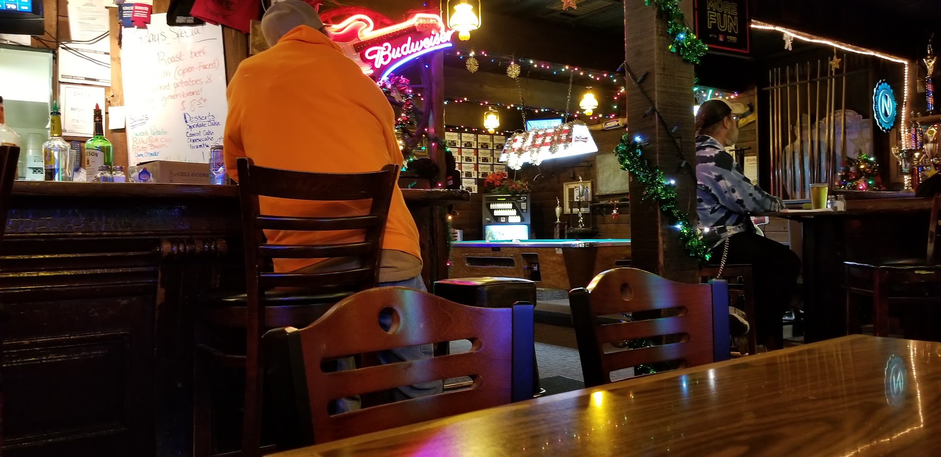 When we entered the music from the digital jukebox was loud rock and unpleasant fir a midday lunch. When it ended, I chose the mellowest tunes I could find, which was a challenge. And lastly, watch your step: the floor has some slopes which she be interesting for someone inebriated to navigate. Service 5. Food. 3...
