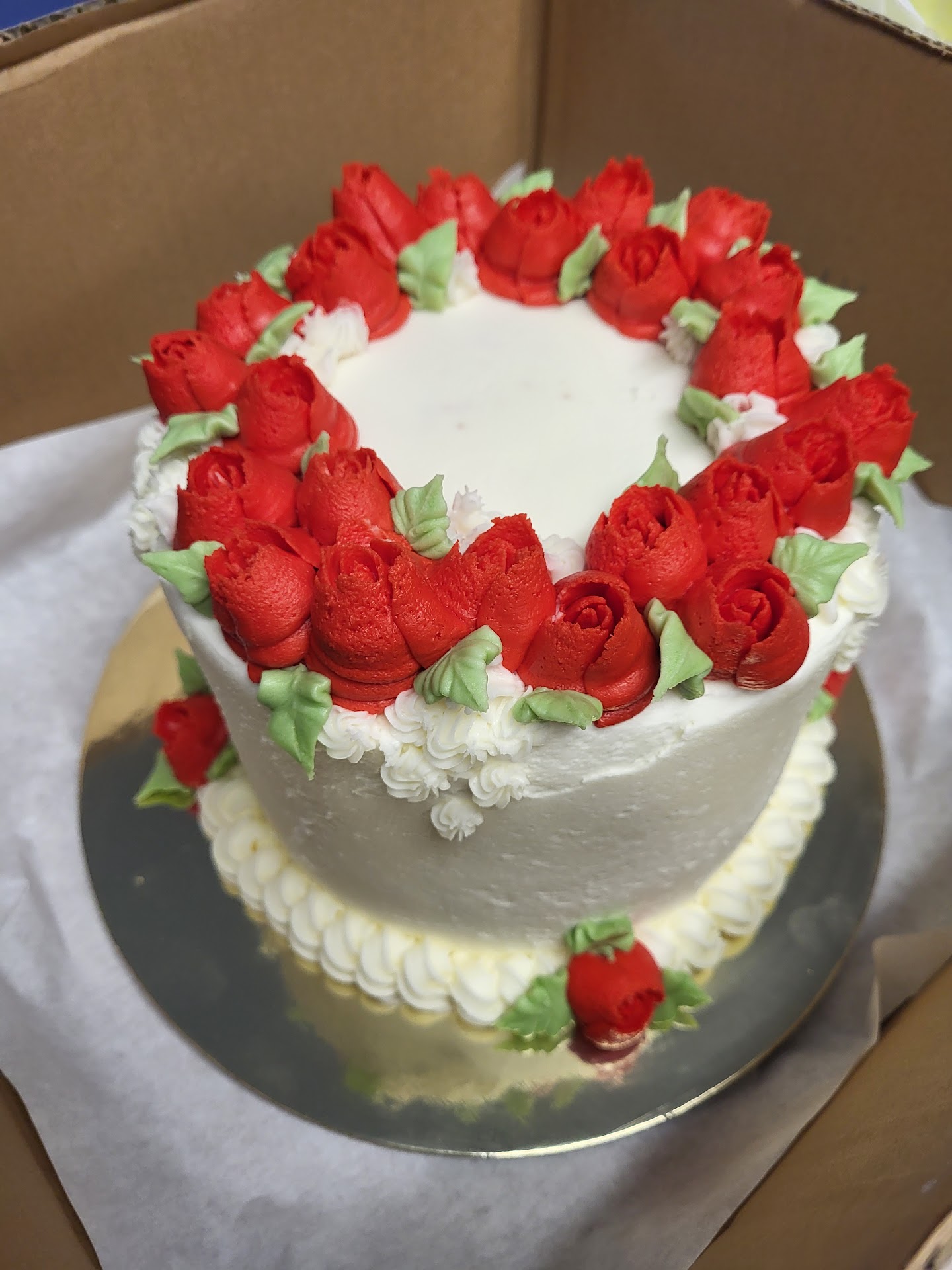 Lovely bakery in Roseburg Oregon that offers custom cake, cupcake and small baked goods to order. They also have cute little gift items for your special occasion. We ordered a red velvet cake for a birthday and it came out perfect. While we waited for the finishing touches to the cake, we grabbed a canoli and a walnut chocolate chip cookie. Everything was fantastic and you can tell by the taste and look of the baked products that these gals put alot of love into baking them. I'm bummed more people don't know about this special little bakery, I think some marketing would help. They didn't have loads of product because they can only bake what will sell without being wasteful and having to toss out amazing food. I saw a sign inside the shop that they don't do weddings. I believe they only have a few staff members but what they do bake is seriously worth purchasing. It's a small shop, so I see why larger orders would be difficult. They also do not make cheesecakes. However, I believe It's a Roseburg Gem that doesn't get enough attention. There are quite a few gems in Roseburg that the city could really help out by helping them market, and it's a shame they don't get the attention they deserve. They do have a Facebook page but no website or boxes for your orders like bigger bakeries would have. My cake was given to me in a cut off box and it was able to slide around although we were able to get it home safely. Usually you'd get a proper cake box with a lid and no room for the product to slide around. The canoli was given to us in a chinese food to go box, and the cookie was the only item placed in a proper cookie bag. I do not think a lesser review is necessary because of these facts but i would reccomend to the owner to get some proper boxes for cupcakes, cakes and canolis that a typical bakery would provide. Aside for those few details, The cake order was probably worth more then what they sold it for. We did a double layer red velvet with cream cheese frosting and edible red roses as a topper. It was a lovely cake that got many complements at the party and everyone said how speedy it must have been. It was under $30 and fed 8 people giant slices they could hardly finish. I am very grateful for the work they put into this and will order from them more often. I highly reccomend Kim's Cupcakery and hope to see them succeed in this...