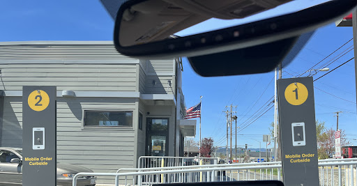 This is for the service. I saw the drive through backed up into the neighboring parking lot so I thought I would go inside as I was heading for Vancouver and wanted to get on the road. I ordered an Egg McMuffin meal. Took me less than one minute to order and pay. I got a red number tent with "1" on it. She said, "We'll bring it to you. I liked that as I had knee replacement surgery 9 weeks prior and that, along with my messed up back, etc. makes it painful to stand. I sat along the counter with stools so they could find me easily although the din of alarms, buzzers, beeping was horrible. I got on my phone to set my course and text my nephew with my ETA. I checked my email. I looked around and saw people with numbers "2", '3" "4" happily munching away on huge orders for a full table.