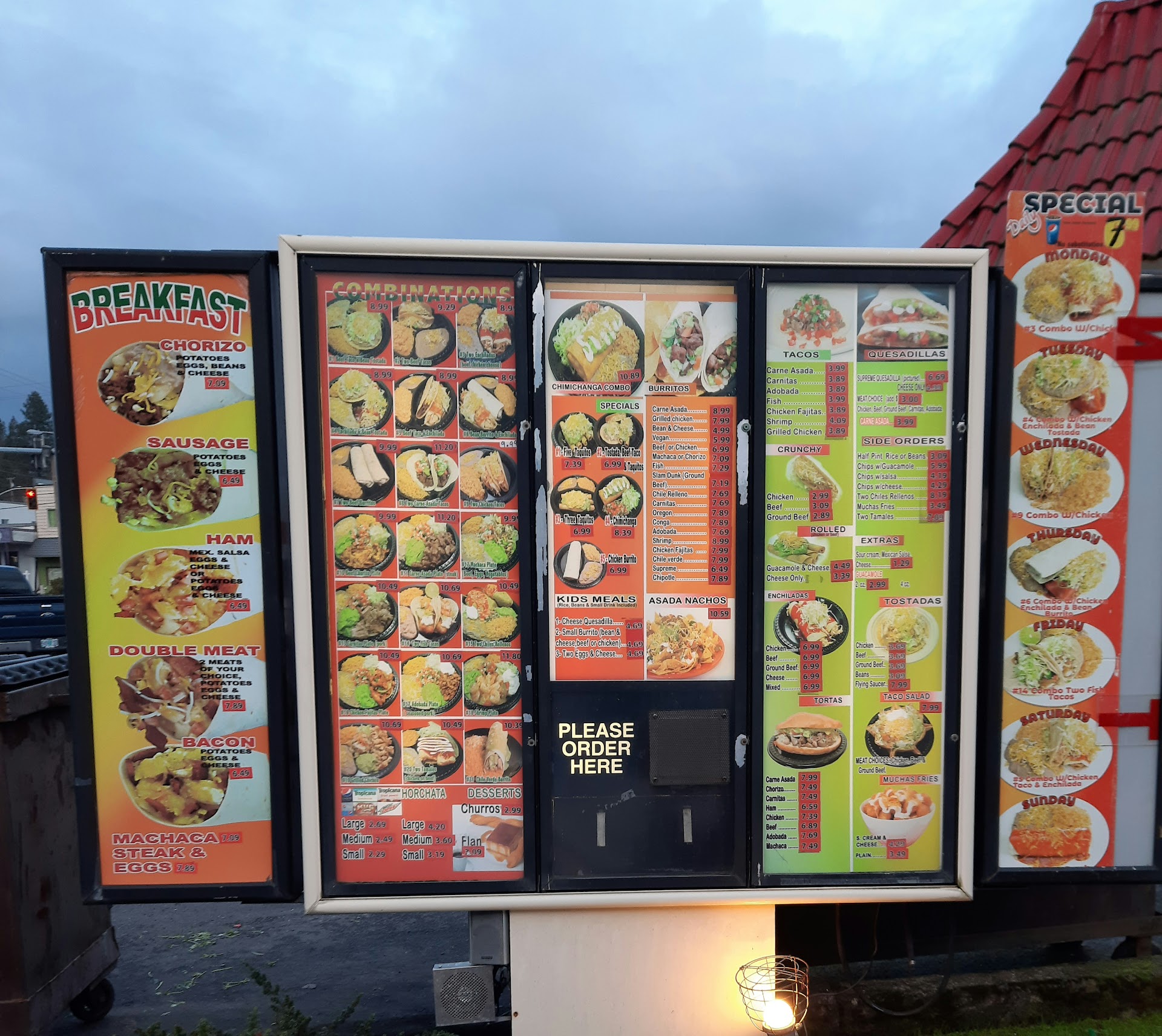 I've tried this place a couple times due to location convenience and neither time was good. The rolled tacos are very over priced considering they are barely thicker than a finger and cost more than better restaurants. The guacamole is the diluted kind that doesn't have much flavor. At least half of My daughter's breakfast burrito was chunks of bacon fat. With that not being edible, she would have just eaten the tortilla except that was super soggy from grease. I got a taco salad. The picture on the menu show chunks of chicken but the chicken it came with was shredded chicken. The seasoning was OK and there was only lettuce, sour cream, cheese and imposter guacamole. I stand cemented in my opinion that the best Mexican taco shop in the Roseburg area is Romulitos. Good prices...